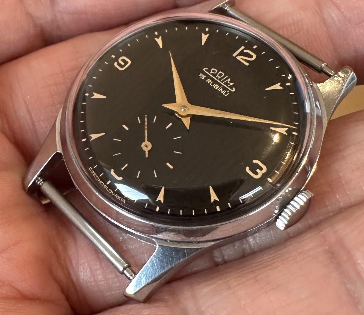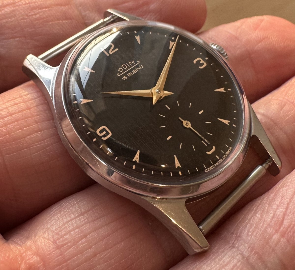 Prim 50 014 1, priemer púzdra 32 mm, strojček Typ 011, funkčné, stav viď. fotografie.