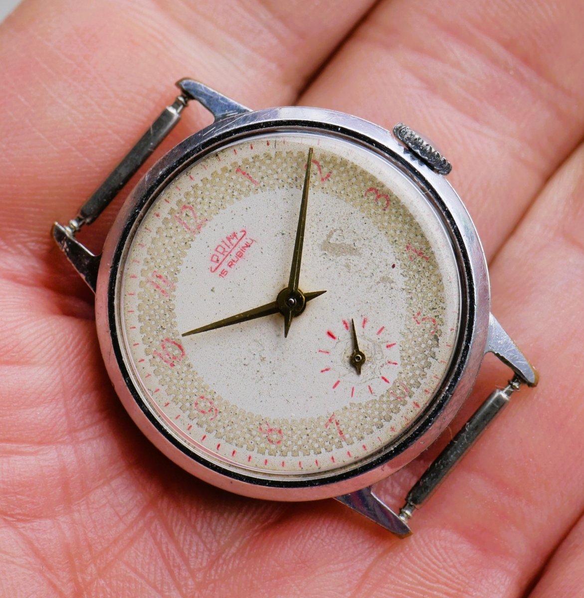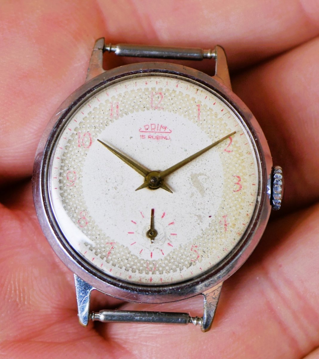 Po natažení funkční, bez servisní historie. Odchylka chodu asi plus 2 minuty za den.