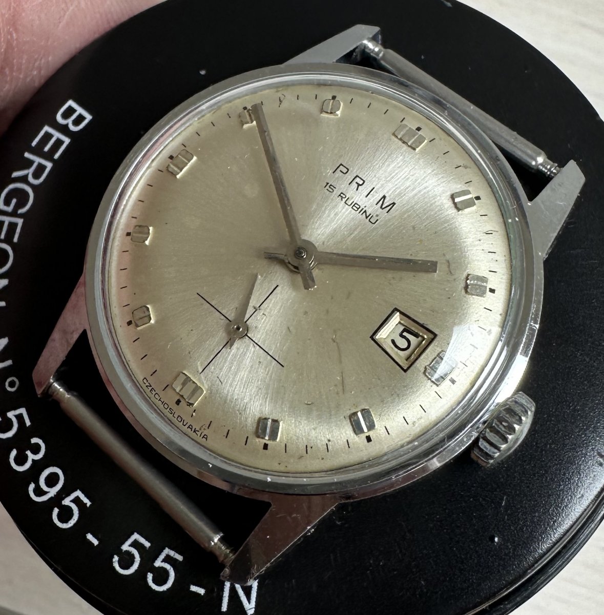 PRIM 52 155 1 sunburst číselník, priemer púzdra 32 mm, funkčné, presné, stav viď. fotografie.