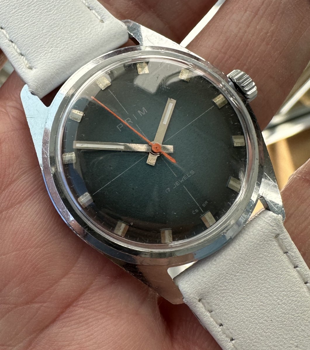 PRIM 66 324 1, priemer púzdra 34 mm, funkčné, presné, nový remienok, stav viď. fotografie.