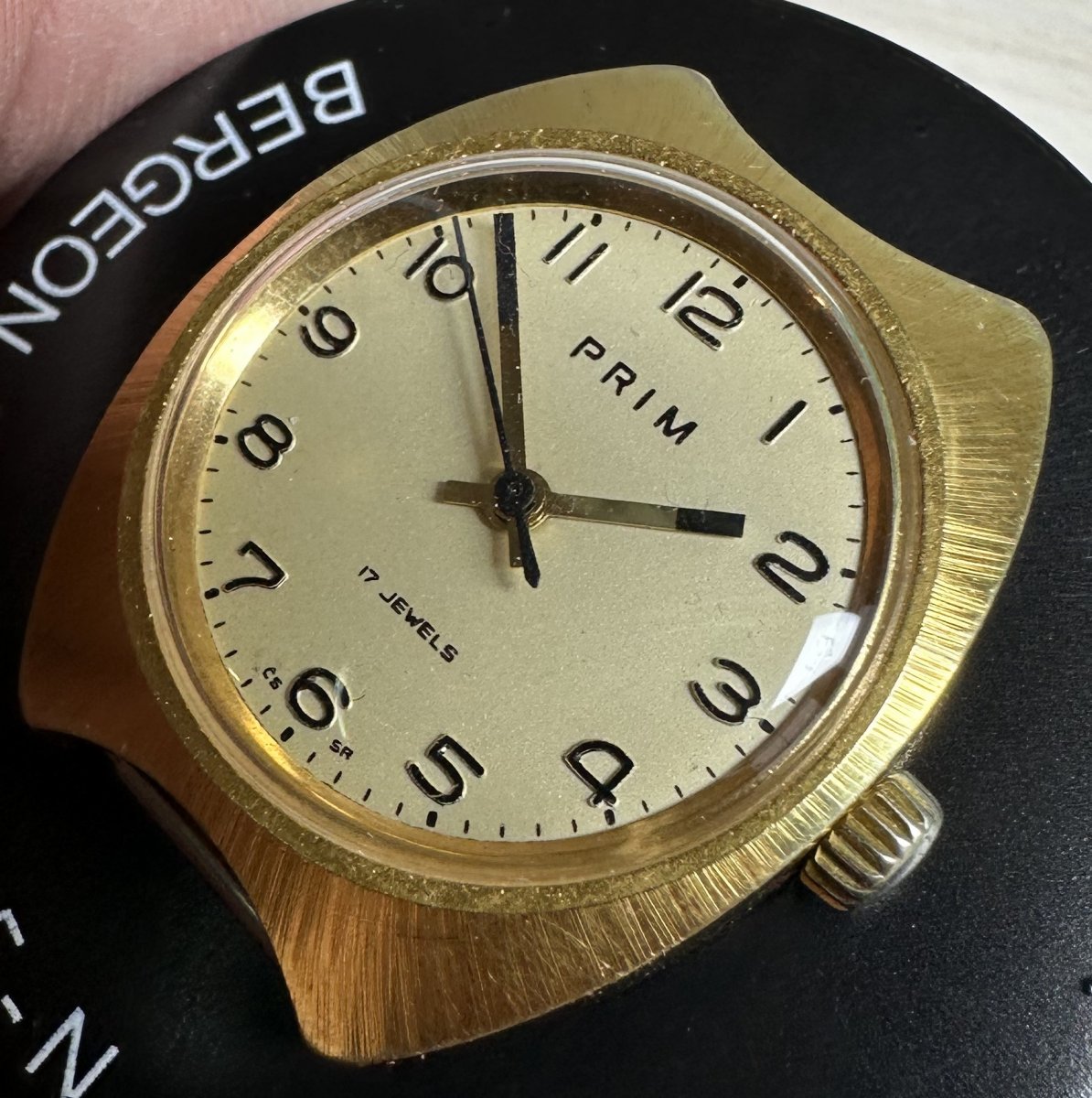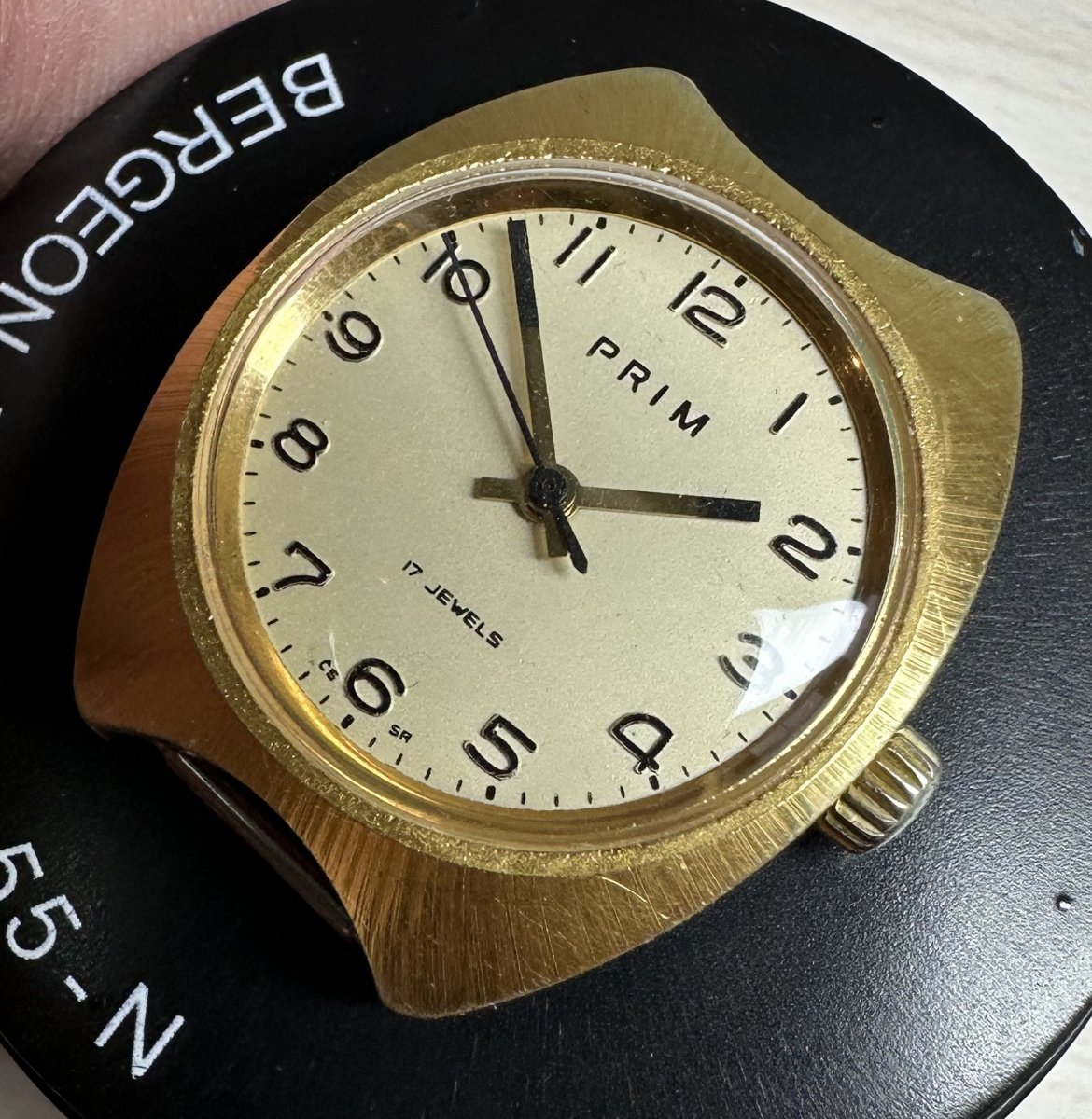 PRIM 66 408 3, rozmery púzdra 29 x 35 mm, funkčné, presnosť a dĺžka chodu nesledované, stav viď. fotografie.