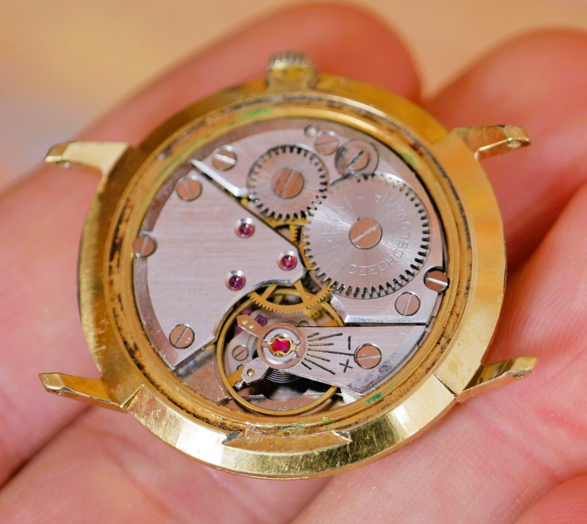 Stav viz. foto, nošené, stopy stáří na pouzdru i ciferníku.