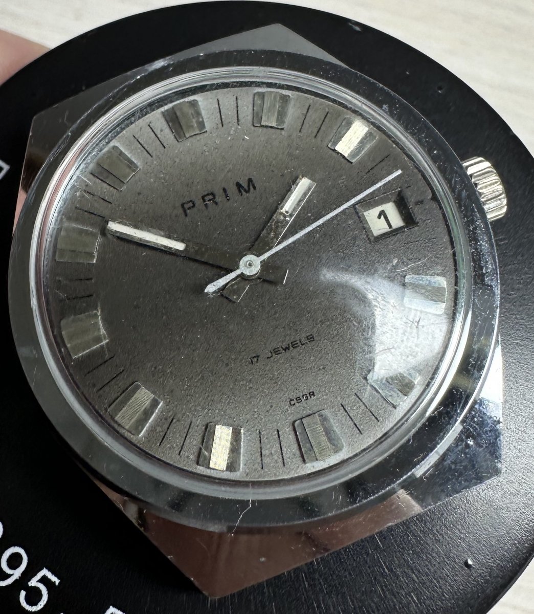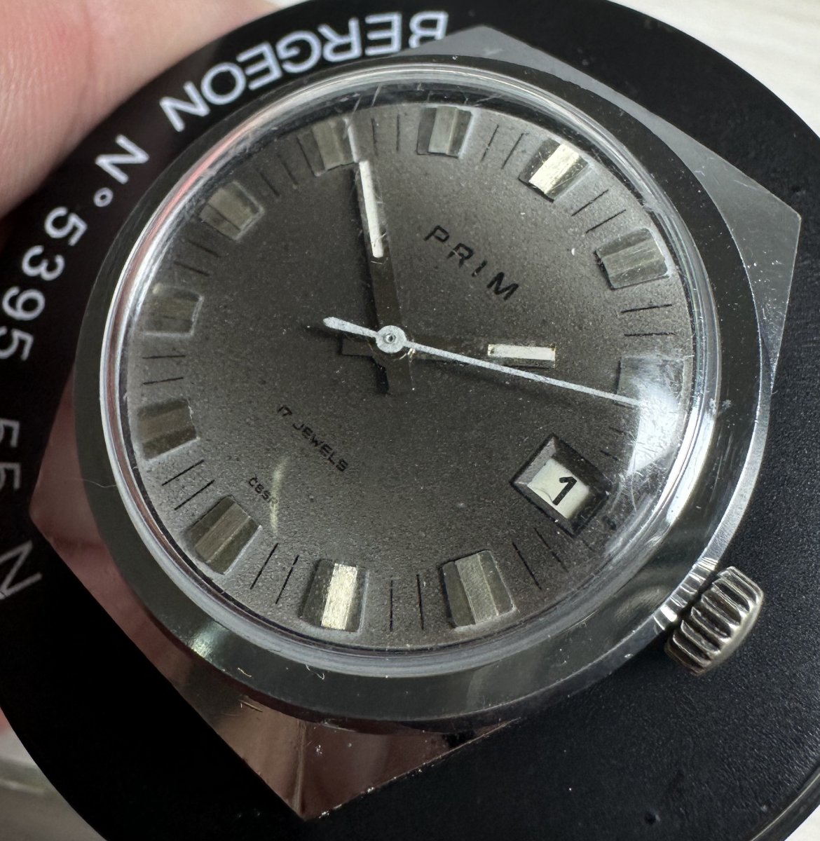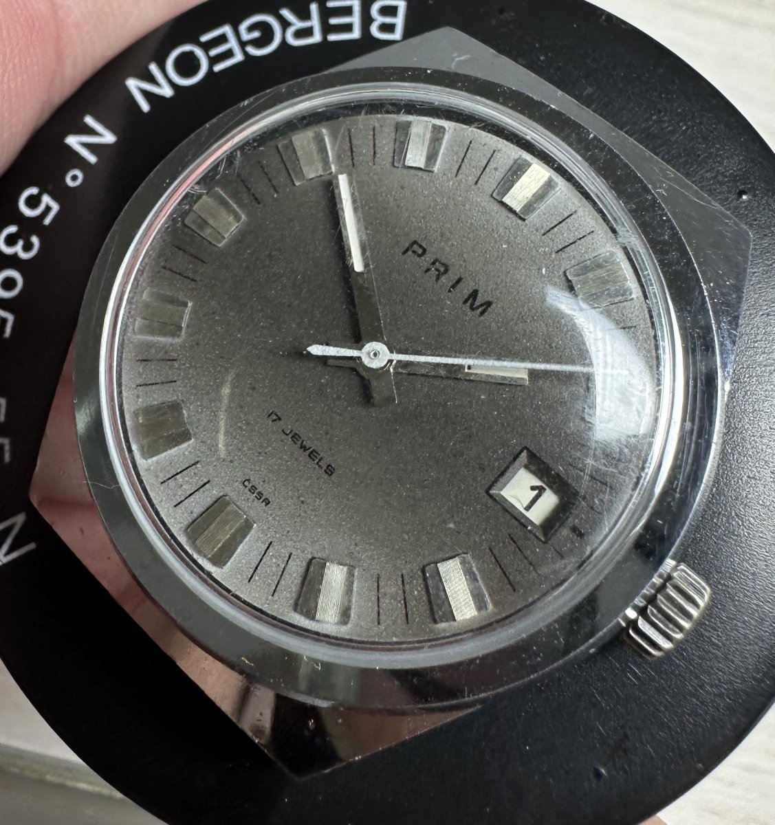 PRIM 68 387 1, rozmery púzdra 34 x 37 mm, nálezný stav, funkčné, presnosť a dĺžka chodu nesledované, stav viď. fotografie.