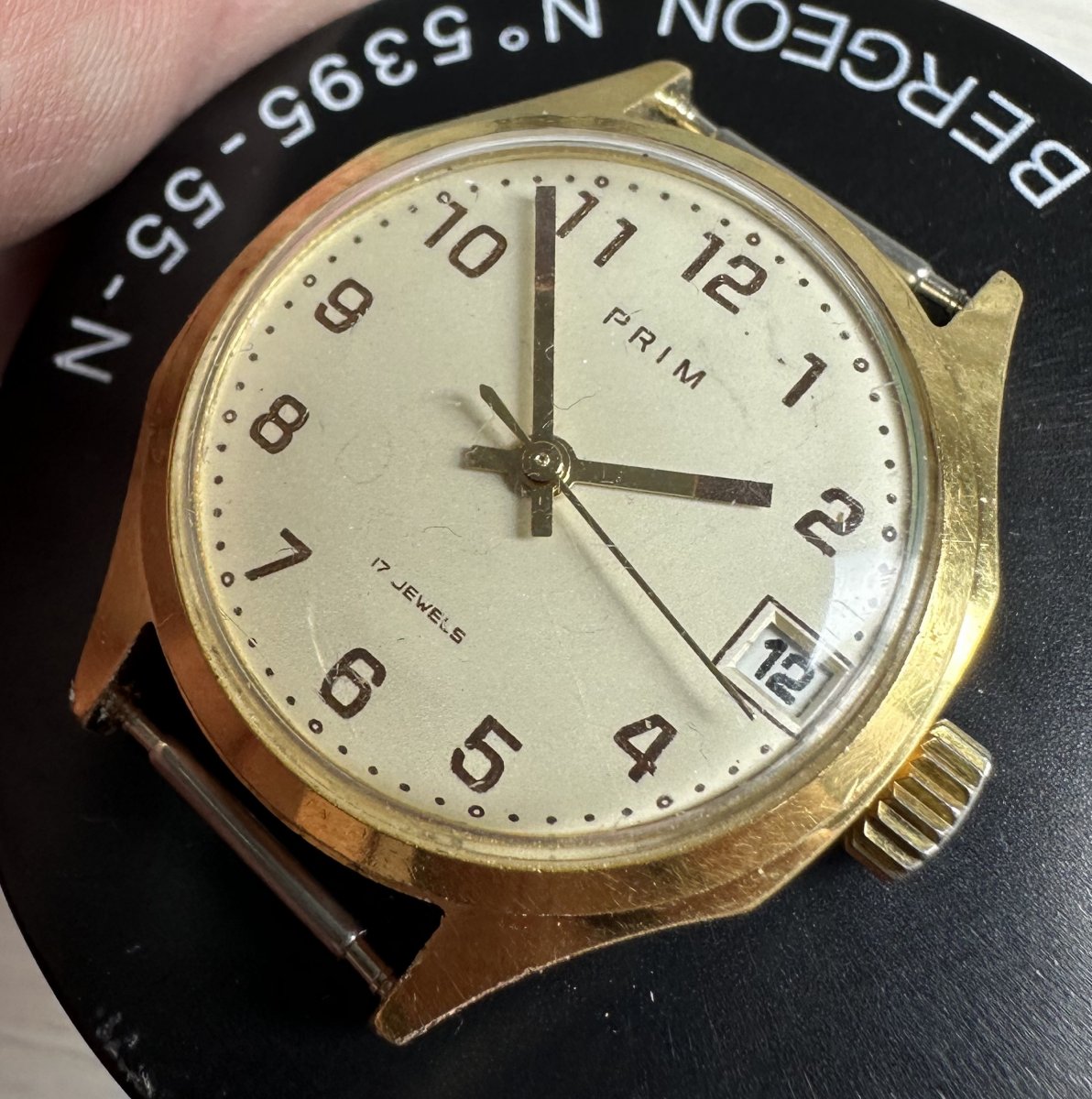 PRIM 68 499 3 hnedé indexy - nie sú v knihách, rozmery púzdra 29 x 35 mm, nálezný stav, funkčné, presnosť a dĺžka chodu nesledované, stav viď. fotografie.