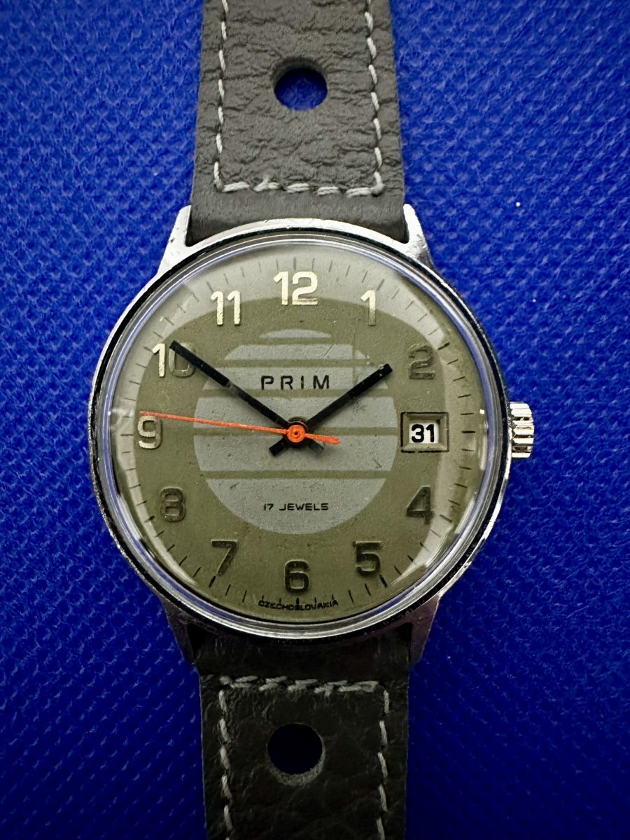 Typové označení CPrim Strojek PRIM Kalibr 68 v pouzdře s manuálním nátahem o průměru 34 mm.