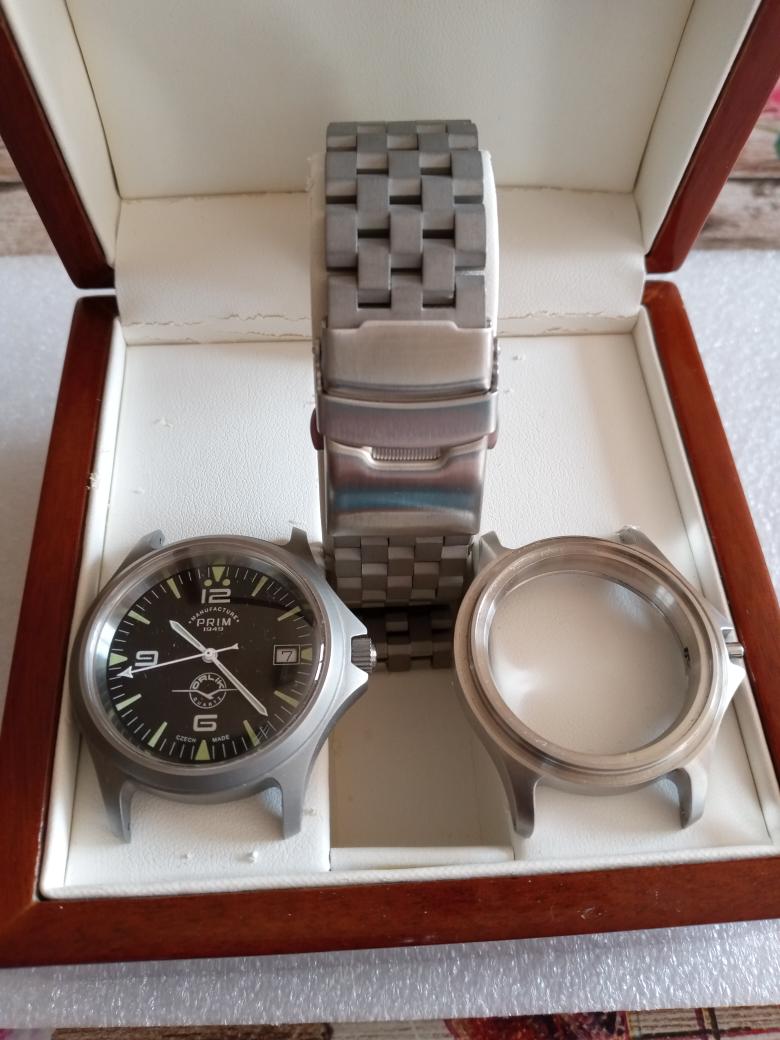Quartzové hodinky Prim Orlík.Stavěné z dílů. V pravo originál pouzdro, není součást prodeje