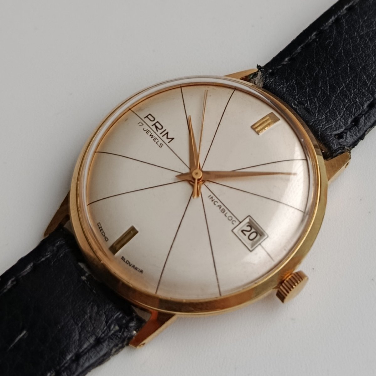 Prodám pánské náramkové hodinky PRIM se strojkem 68.1 - incabloc. Hodinky jsou plně funkční, v krásném stavu. Průměr pouzdra je 34 mm. Rozprodej sbírky.