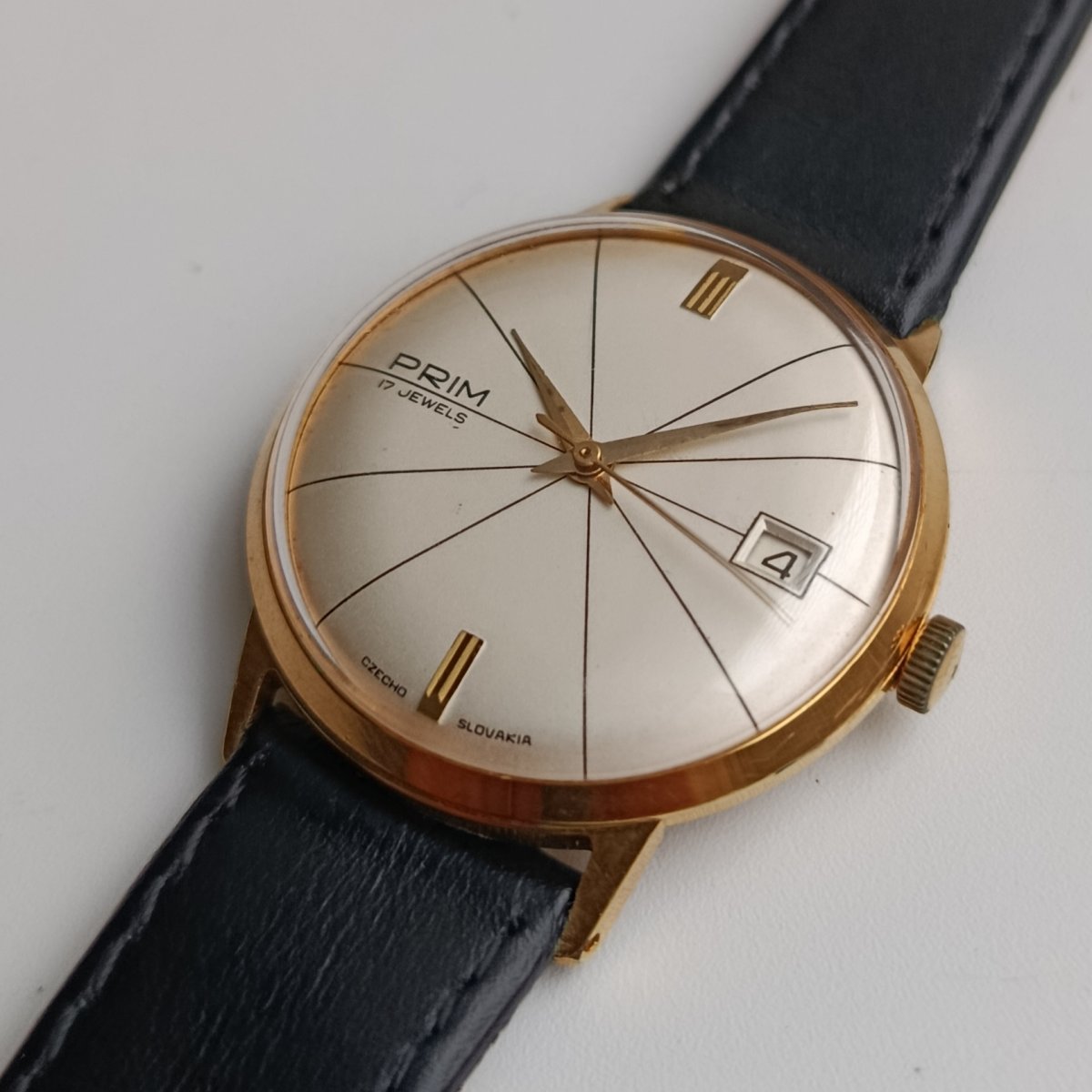 Prodám pánské náramkové hodinky PRIM ala Diplomat bez incablocu - 68.3. Hodinky jsou v krásném stavu, funkční. Průměr pouzdra hodinek je 34 mm. Rozprodej sbírky.