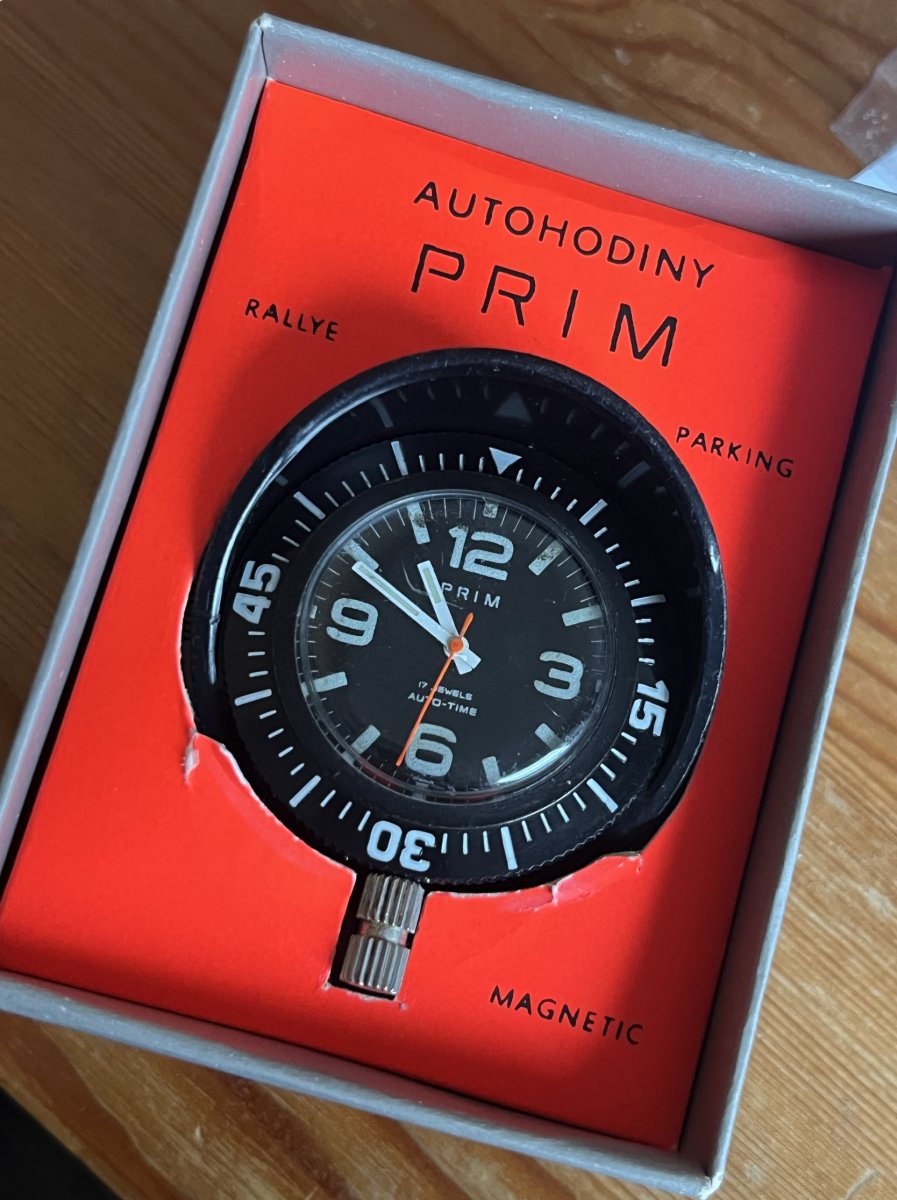 Autohodiny PRIM AUTO-TIME RALLYE, typ 66 332 6 z konce 70. let. V originální krabičce, vč. originálního záručního listu a zadního magnetu. AUTOHODINY JSOU PO KOMPLETNÍM SERVISU U HODINÁŘE. Stav viz foto (na skle škábanec). Posílám přes Zásilkovnu, do objednávky prosím doplňte váš email, telefon a adresu výdejního místa.