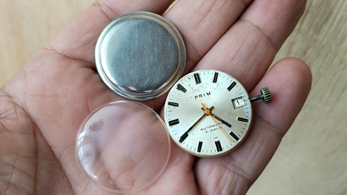 Prim Automat Strojek  funkční  ,Stav viz foto.Hodinky jsou vyřazené z mé osobní sbírky,zboží je použito a tudíž bez záruky.Kupujete to co je na fotu.Snažil jsem se to nafotit v realnem stavu-viz foto.Odesílém řádně zabaleno a pojištěné.Poštuvné dle ceníku ČP.ZÁSILKOVNA.