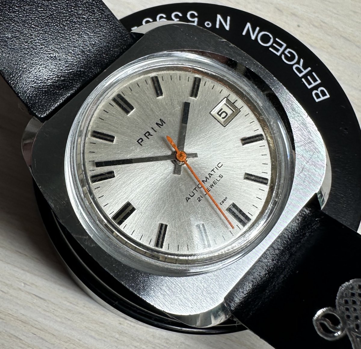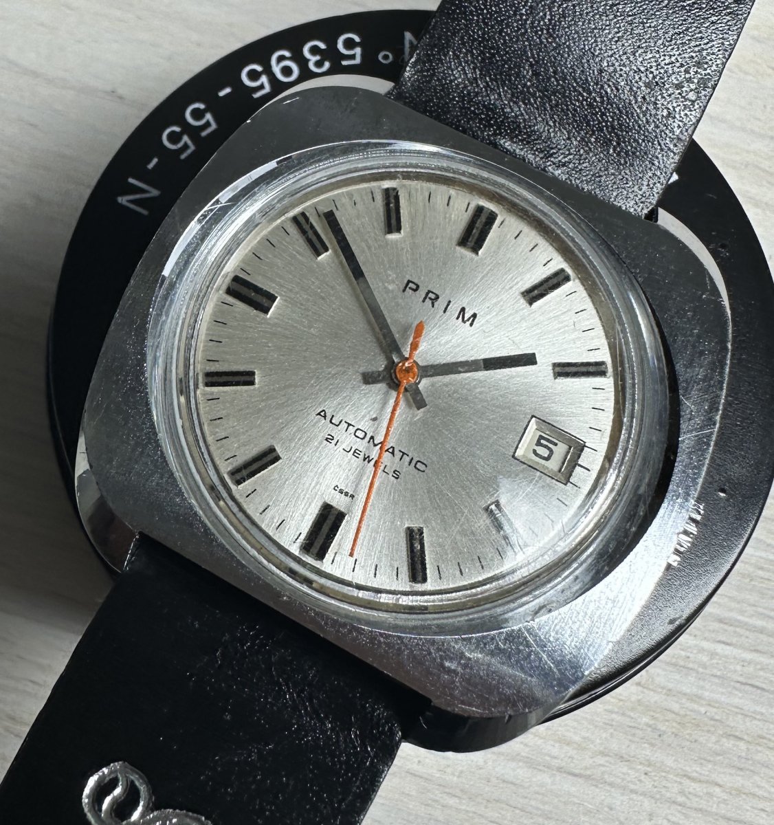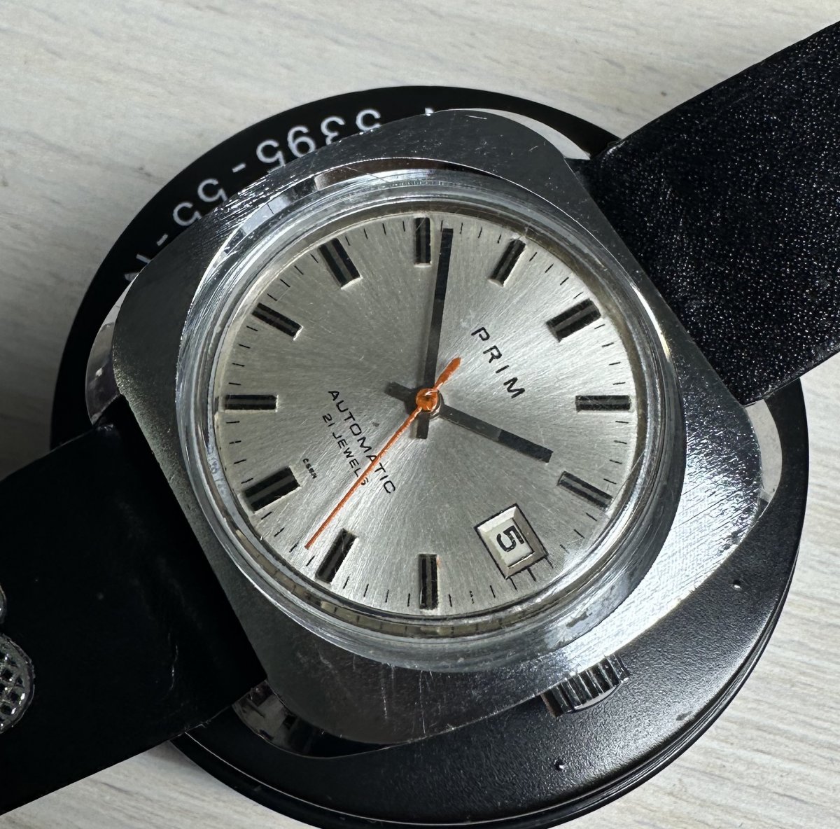PRIM Automatic 96 007 1, rozmery púzdra 37 x 39 mm, funkčné, presné, pôvodný remienok Saturn Praha, top pôvodný stav viď. fotografie.