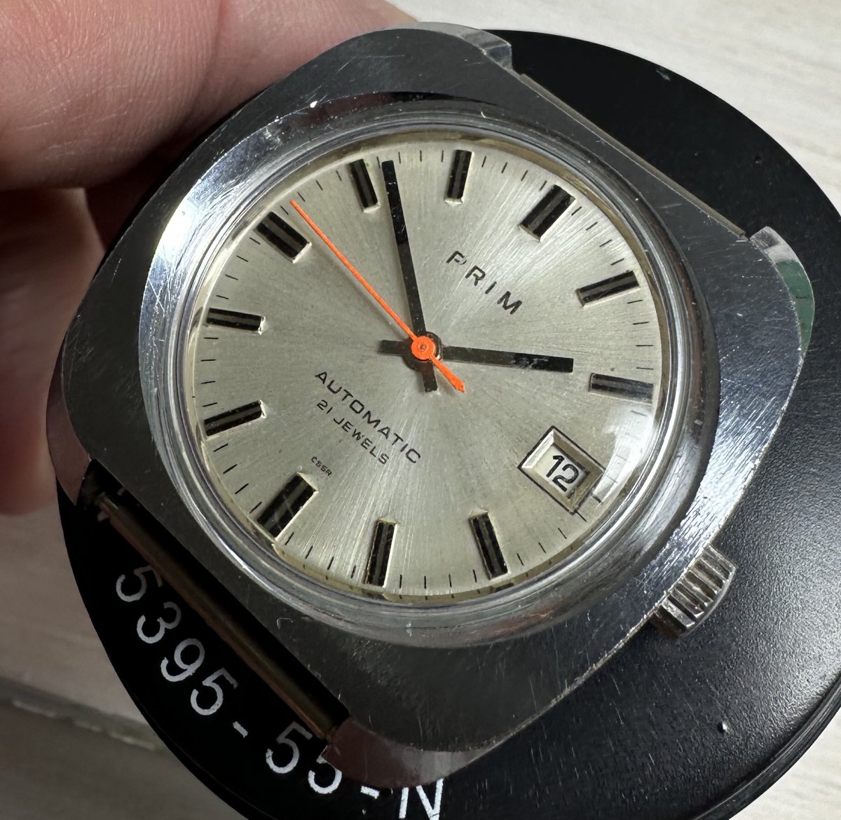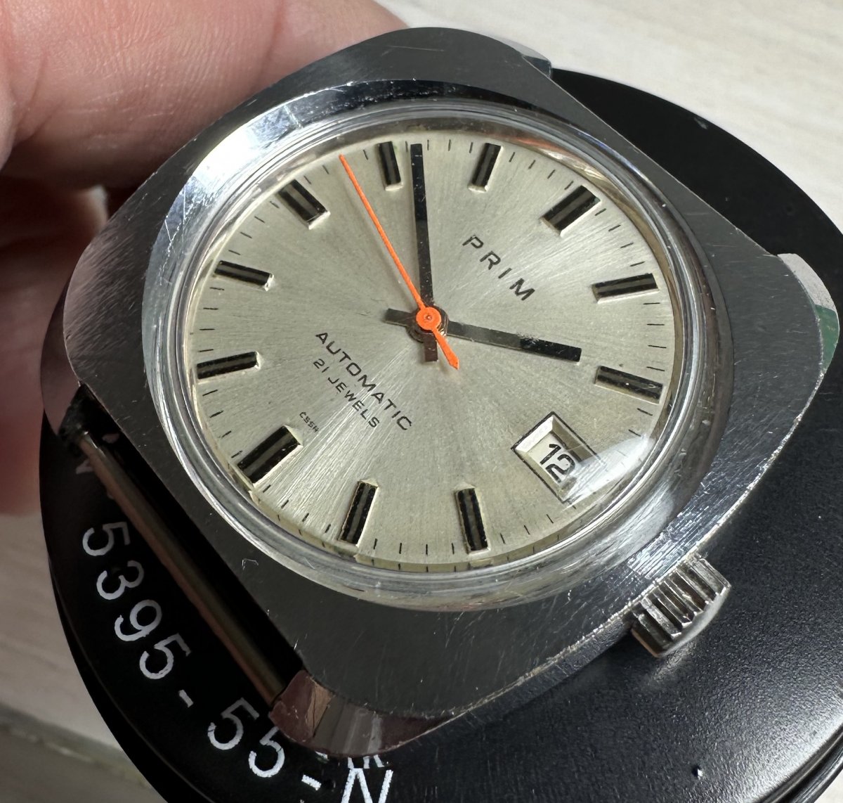 PRIM Automatic 96 007 1, strojček 96 1000 z overovacej série, rozmery púzdra 37 x 39 mm, nálezný stav, funkčné, presnosť a dĺžka chodu nesledované, stav viď. fotografie.