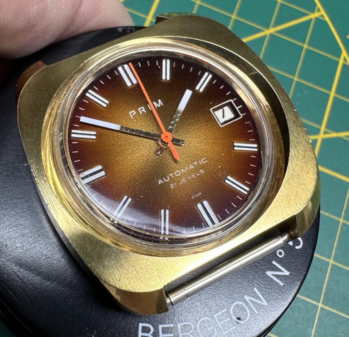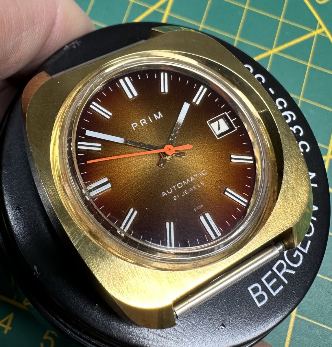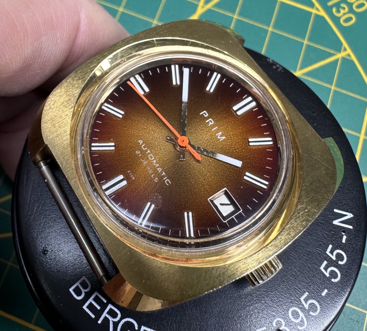 PRIM Automatic 96 008 3, rozmery púzdra 37 x 39 mm, funkčné, stav viď. fotografie.