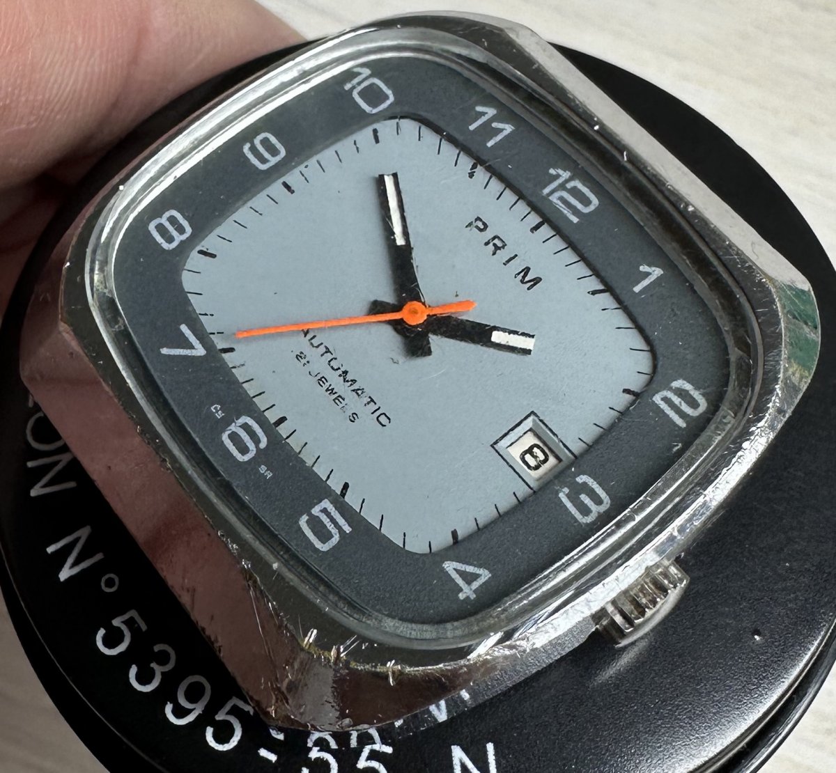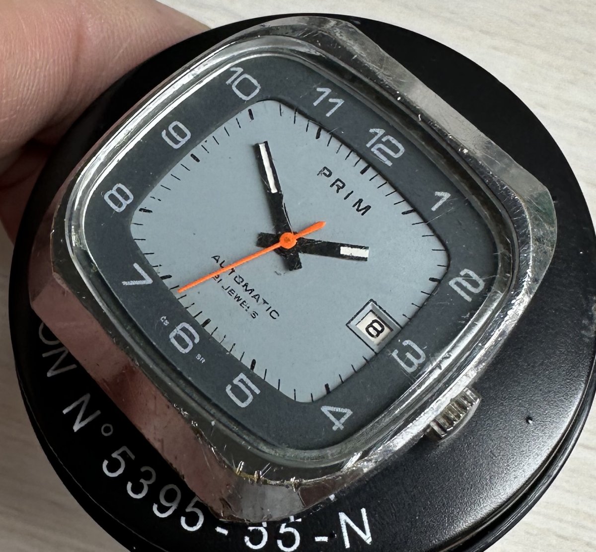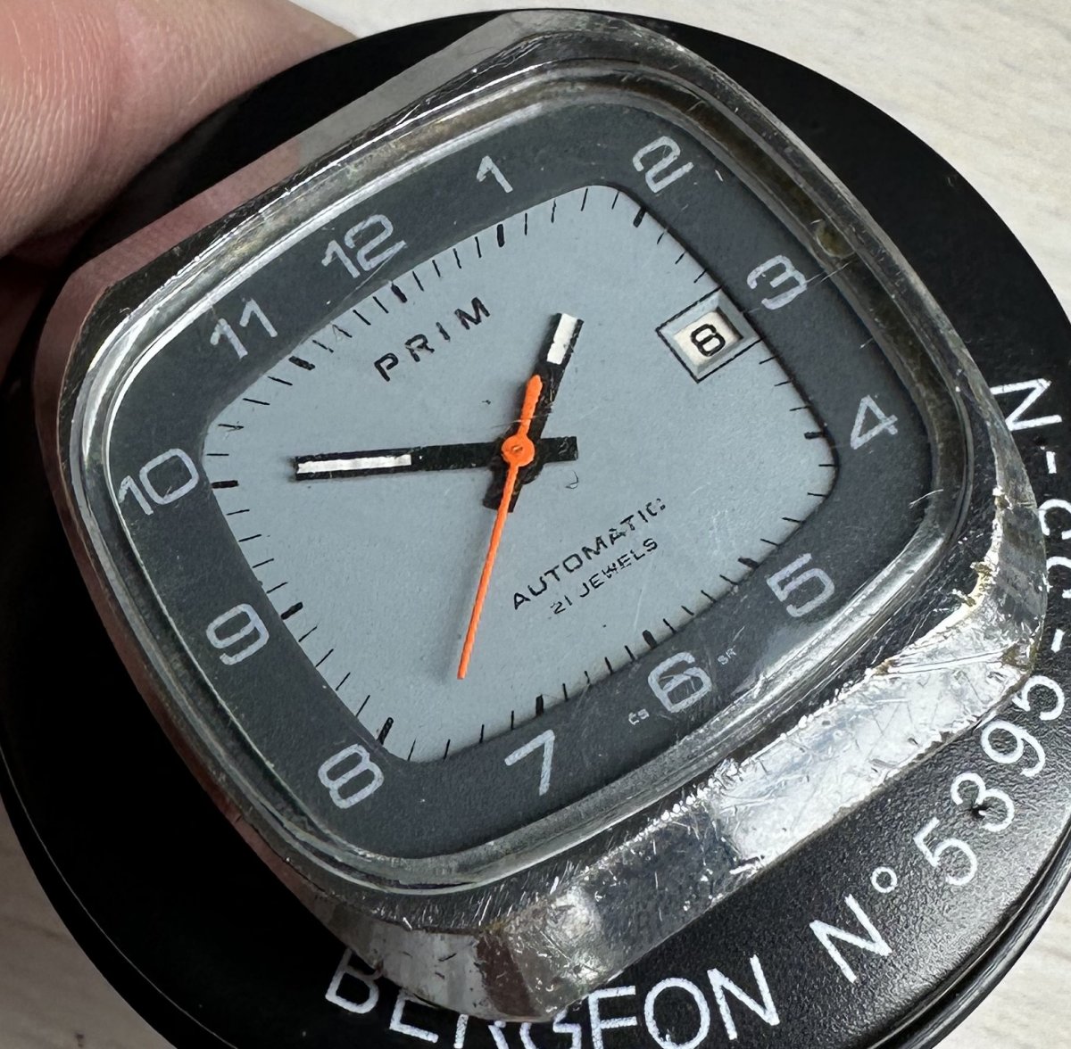 PRIM Automatic 96 027 1, rozmery púzdra 37 x 38,5 mm, nálezný stav, funkčné, presnosť a dĺžka chodu nesledované, stav viď. fotografie.