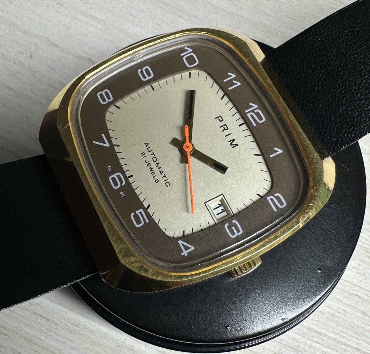 PRIM Automatic 96 288 3, rozmery púzdra 37 x 38,5 mm, funkčné, presné, pôvodný remienok Saturn Praha, top pôvodný stav viď. fotografie.