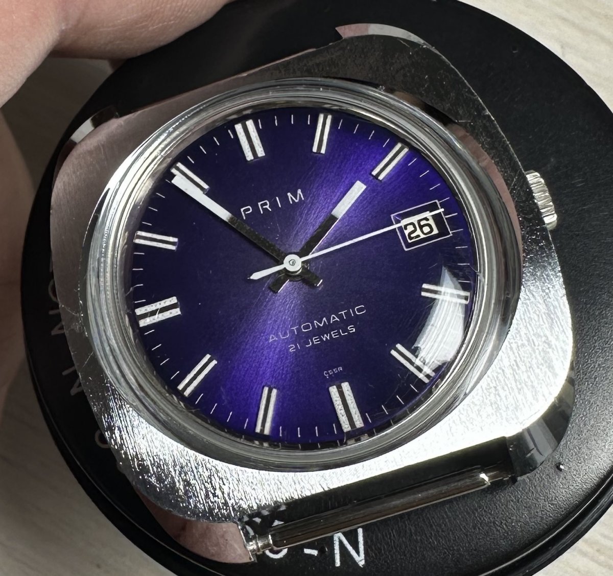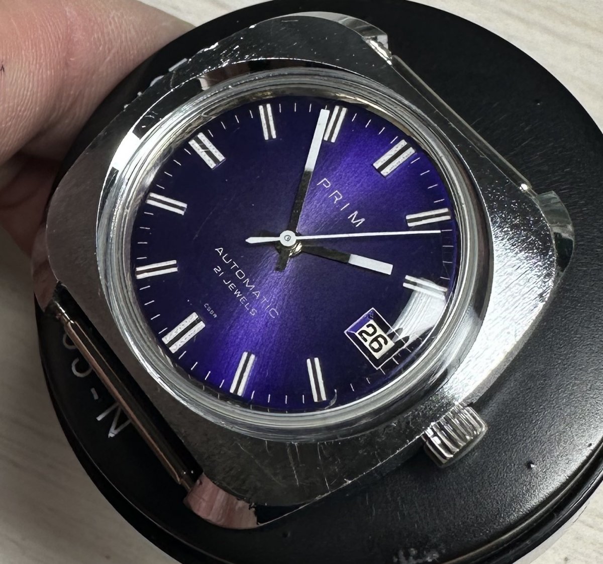PRIM Automatic "fialky" 96 006 1 - stav !!!, rozmery púzdra 37 x 39 mm, funkčné, presné, stav viď. fotografie.