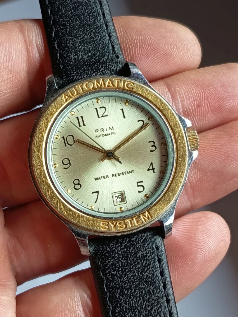 Staré pánské hodinky PRIM AUTOMATIC SYSTEM, hodinky jsou v pěkném, funkčním stavu, strojek kal. 69, průměr chromovaného pouzdra 37,8 mm, založen nový pásek...vše viz foto.