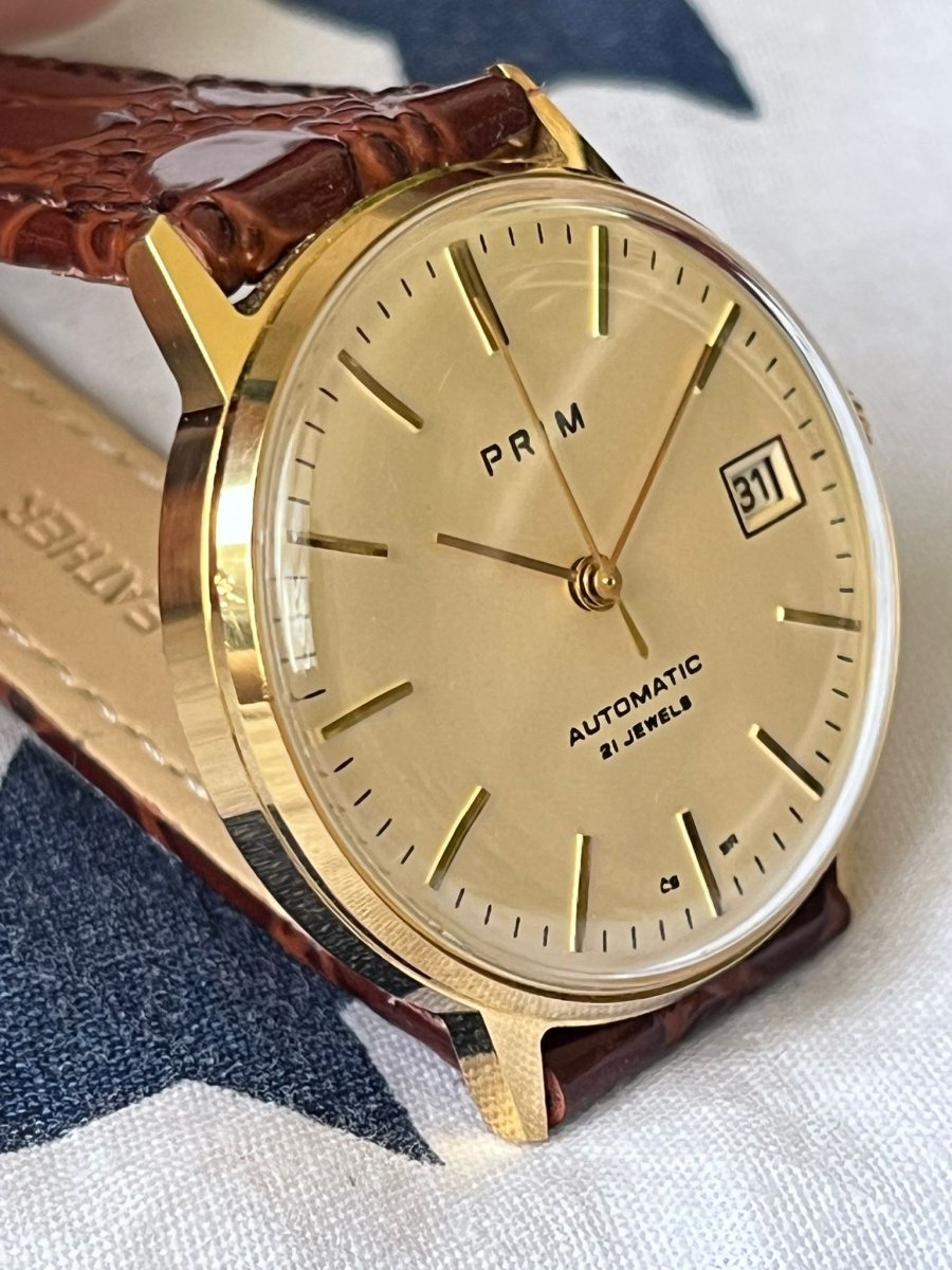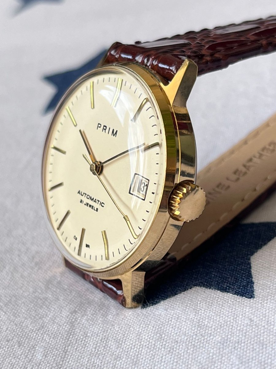 Pánské hodinky Prim Automatic Bauhaus. Ciferník nemá patinu ani skryté škrábance.
