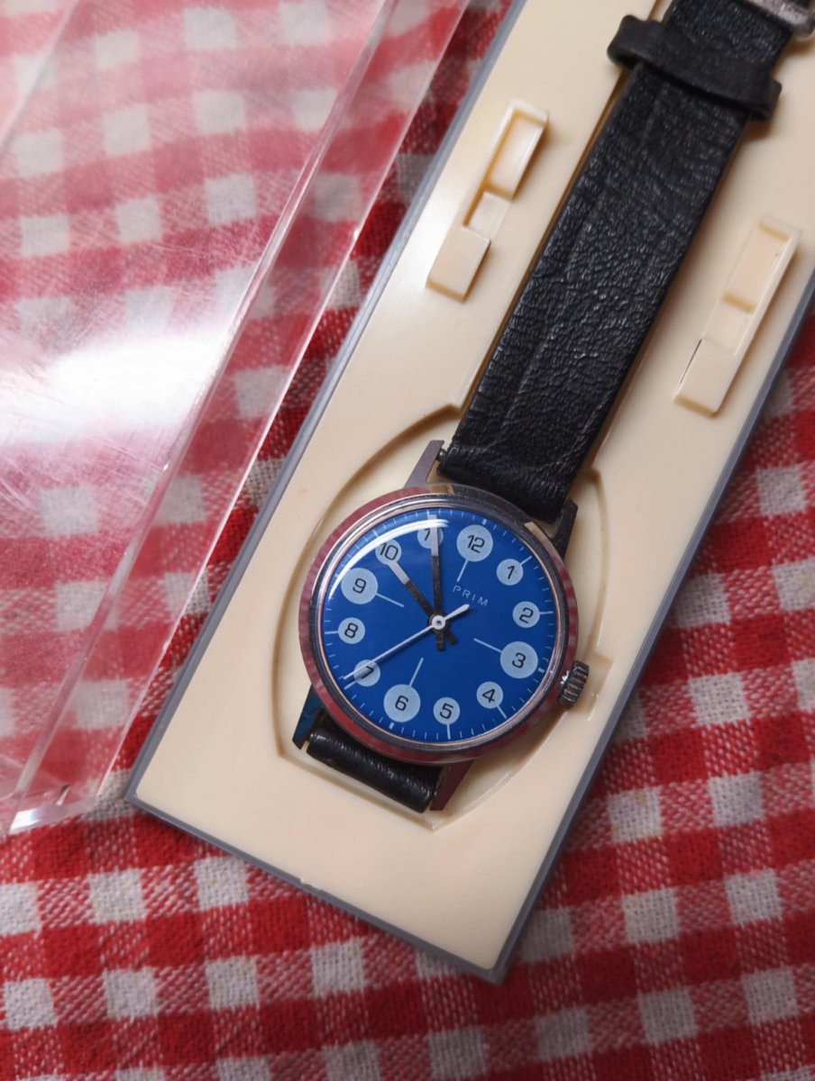 Nabízím ze své sbírky hodinky Prim Beruška s modrým ciferníkem. Strojek funkční, moc pěkný originální stav!