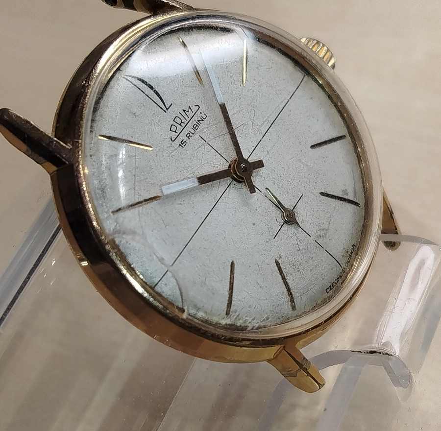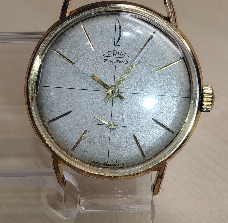 Prim 15 RUBINU majú strojček kal 0111 ktory je funkčný,pozlátene dovozové šroubovacie číslované púzdro má ohnutú nožičku,priemer je 34,5 mm bez korunky,stav na detailných foto.