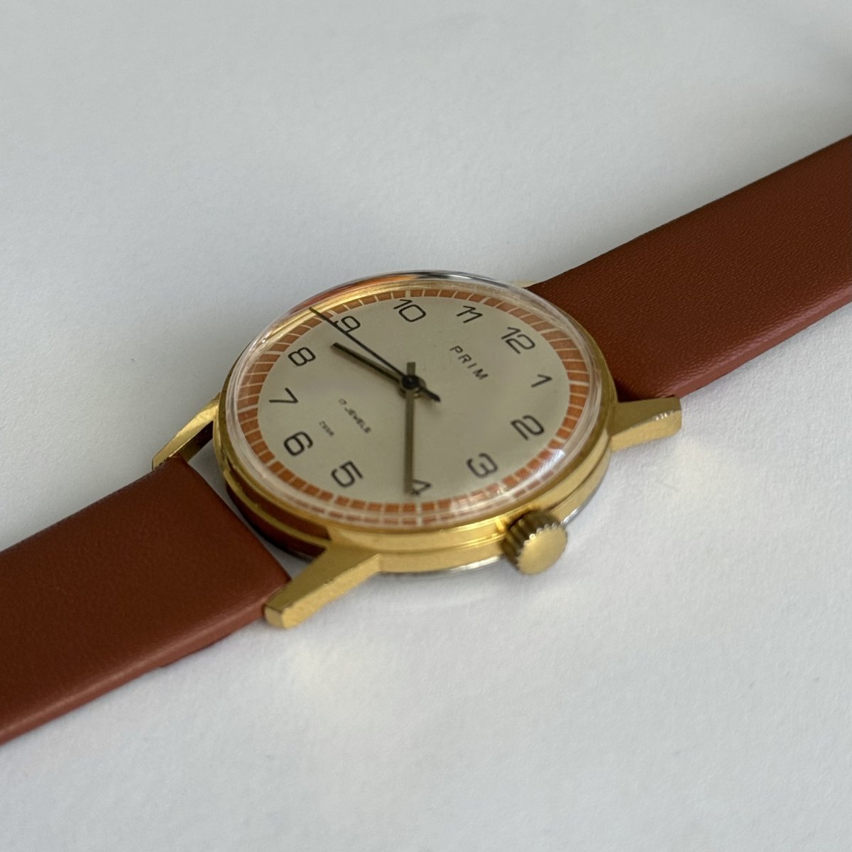 Pěkné funkční prim červené okruží 66,průměr 32mm,nový řemínek,vzhledem ke stáří bez zaruky