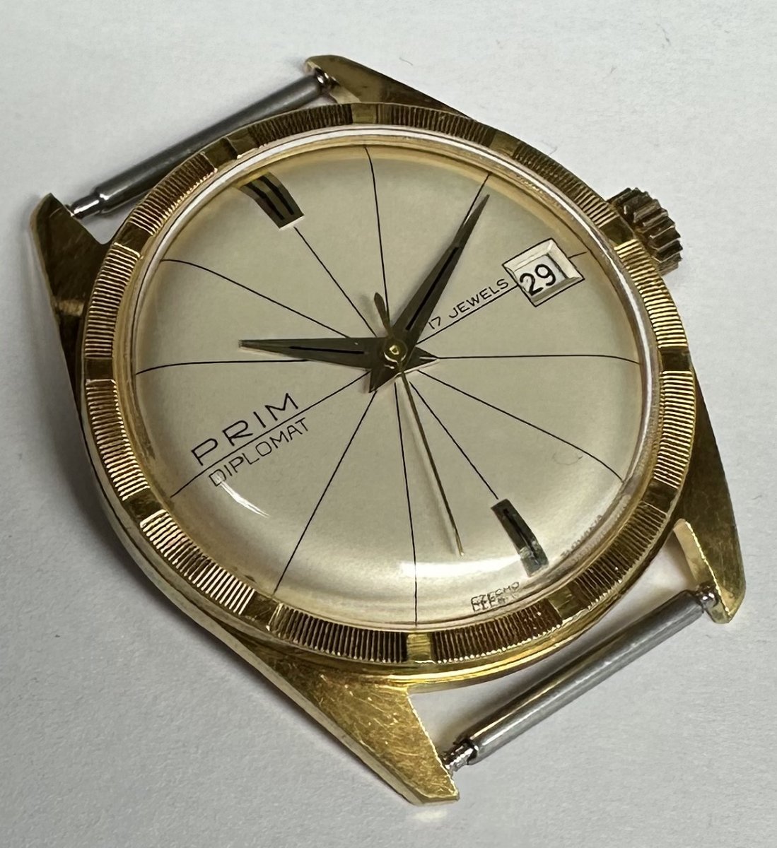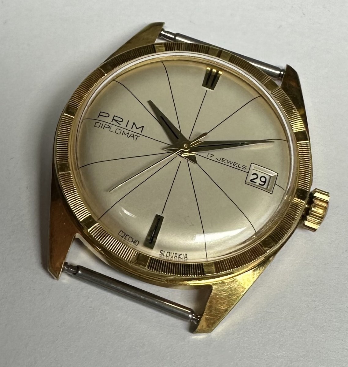 PRIM Diplomat - 68 134 3, priemer púzdra 34 mm, funkčné, stav viď. fotografie.