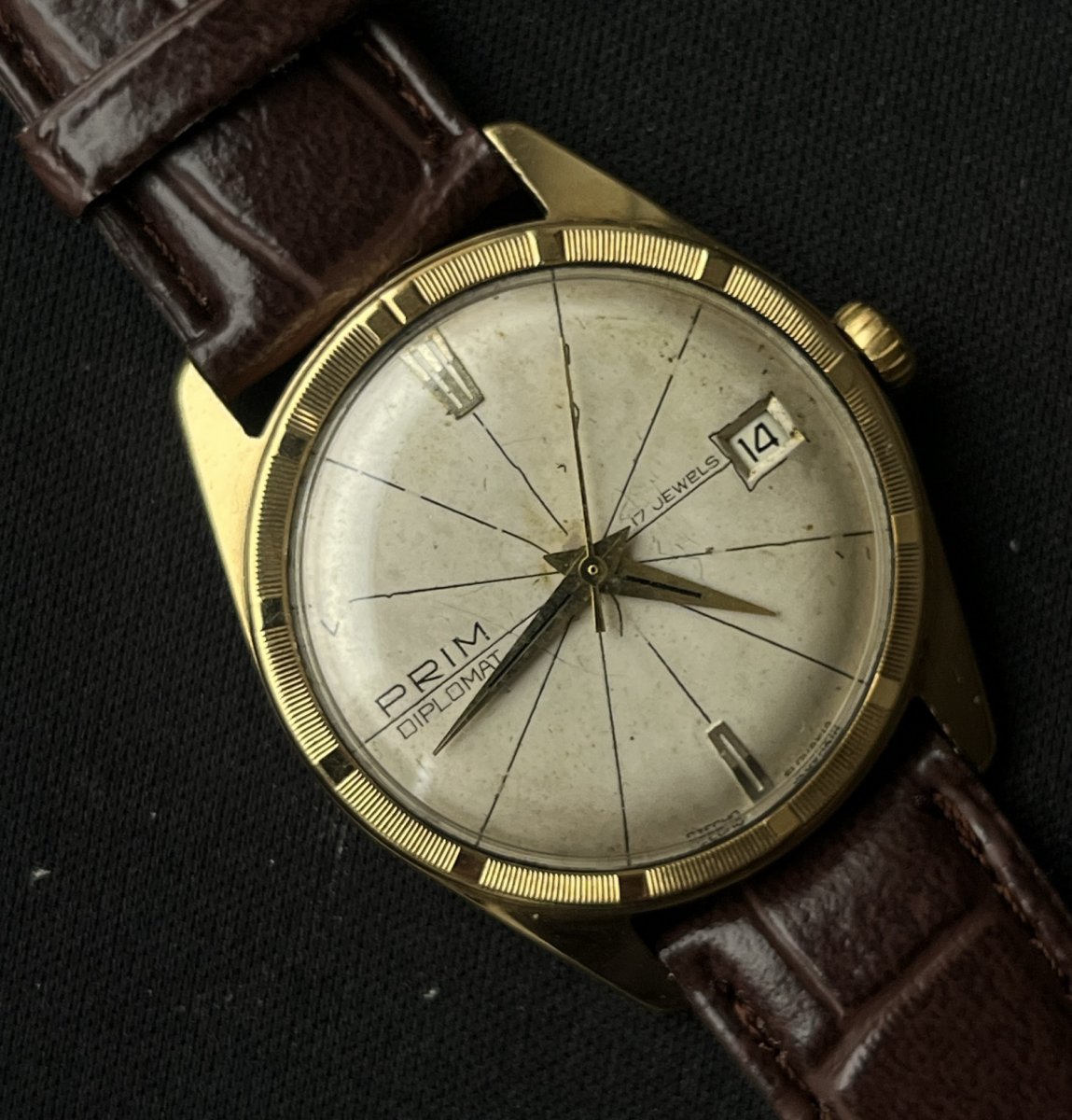 Prodám originální hodinky PRIM Diplomat model 68 134 3, po servisu v hezkém pouzdře, šroubovací víko, originální ručky s výplní. Ciferník stav viz foto. Posílám přes Zásilkovnu, do objednávky prosím doplňte váš email, telefon a adresu výdejního místa. Cena včetně řemínku
