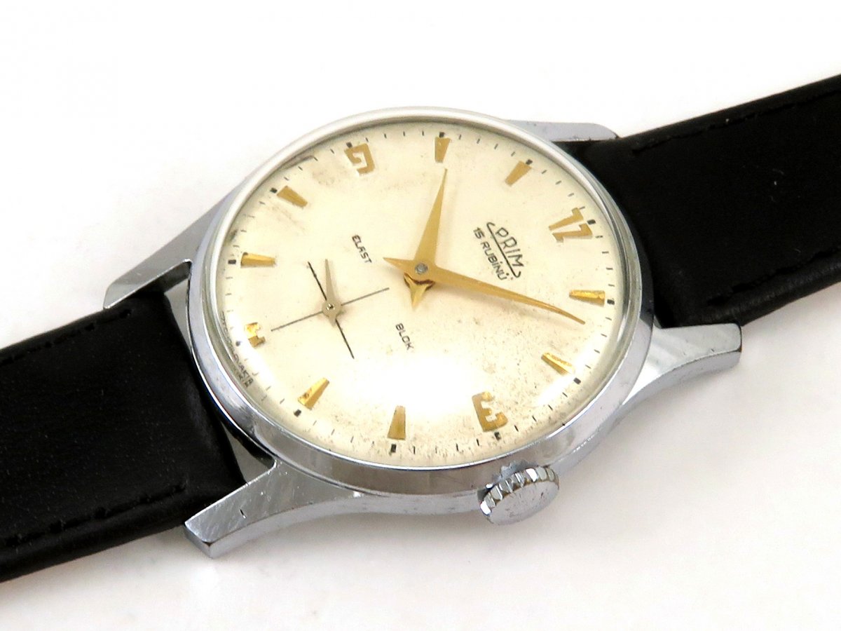 Náramkové hodinky PRIM z první poloviny 60. let. Typ 51 079 1.
