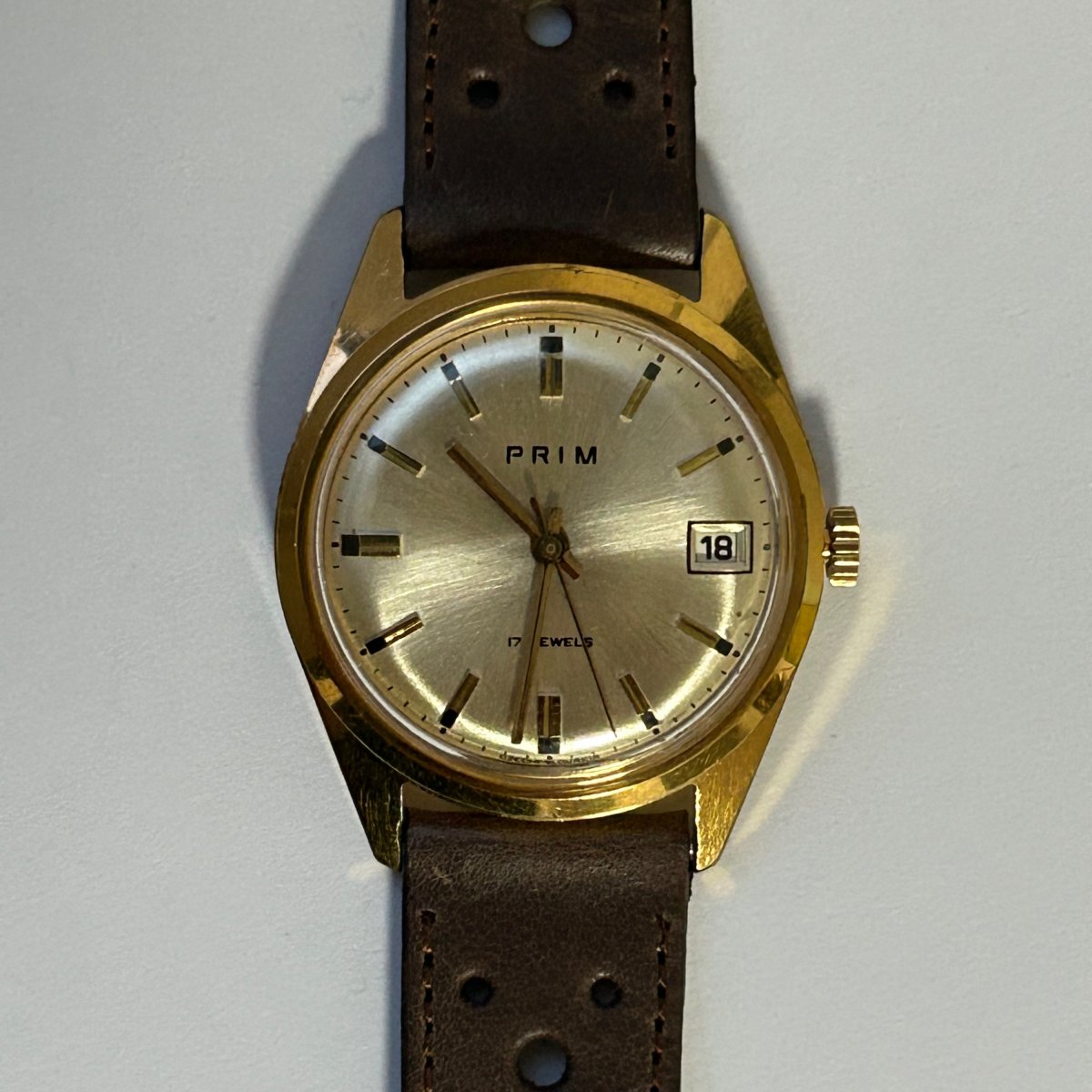 Velmi pěkné hodinky Prim s novým, koženým řemínkem v ceně (495kč). Hodinky jsou plně funkčn.