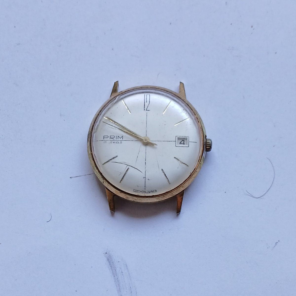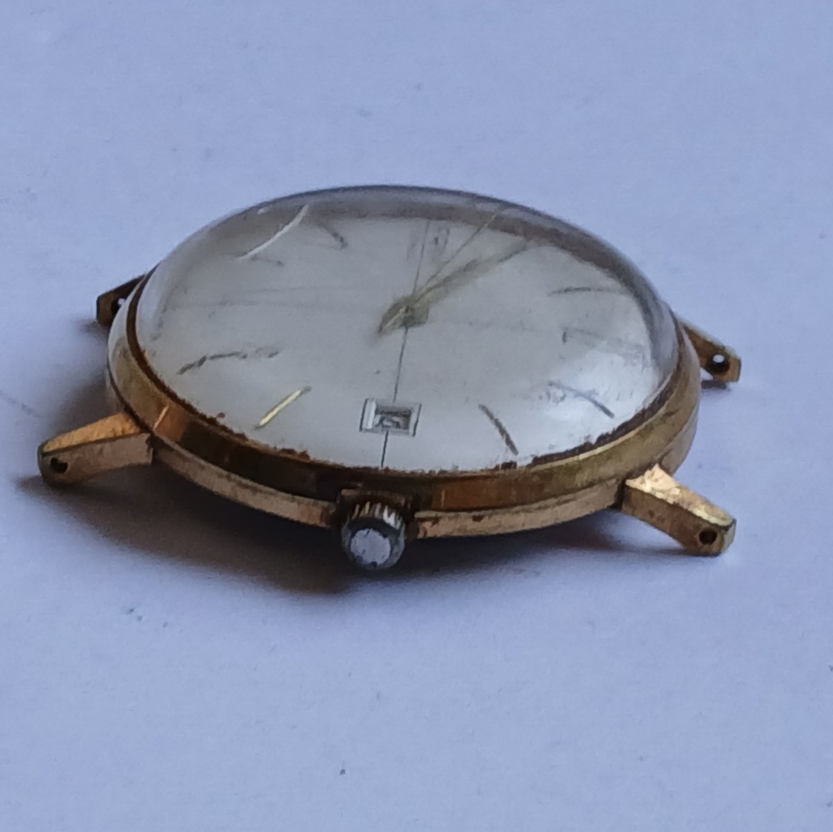 Stav nálezový. Číselník poměrně zachovalý vady jen na 6hodině ostatní vady jsou odlesky špatného skla. Servis nutný.