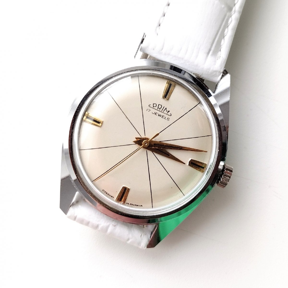 Hodinky Prim elegant v perfektním stavu bez známek používání. Strojek 66.3 plně funkční vzhledem k stáří bez záruky.