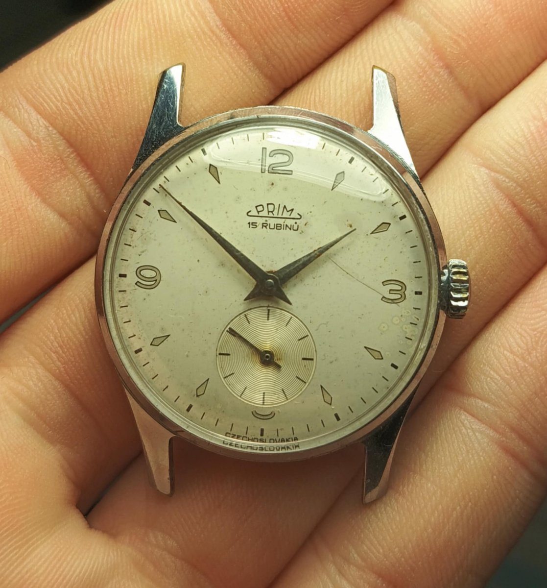 Nabízím nefunkční hodinky Prim s fazetkovým pouzdrem.