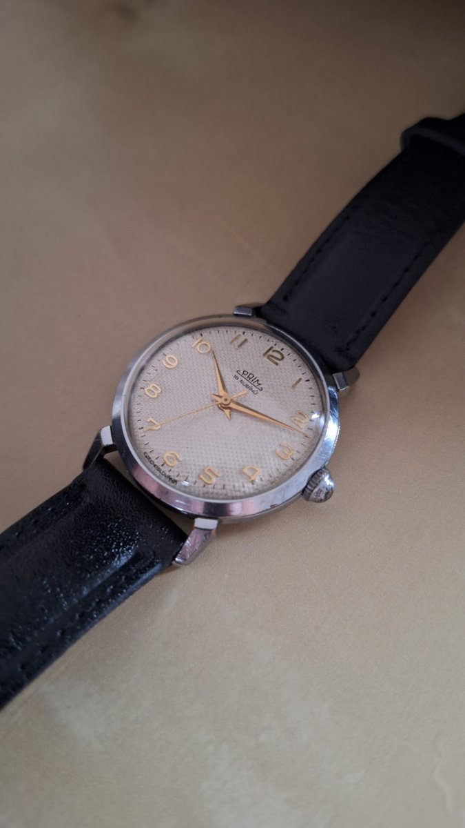 Hodinky jsou plně funkční v hezkém stavu, viz foto. Sklíčko je nové, ciferník i pouzdro velmi zachovalé. Nový kožený pásek je součástí nabídky. Vzhledem k stáří prodávám bez záruky. Podívejte se i na mé další inzeráty.