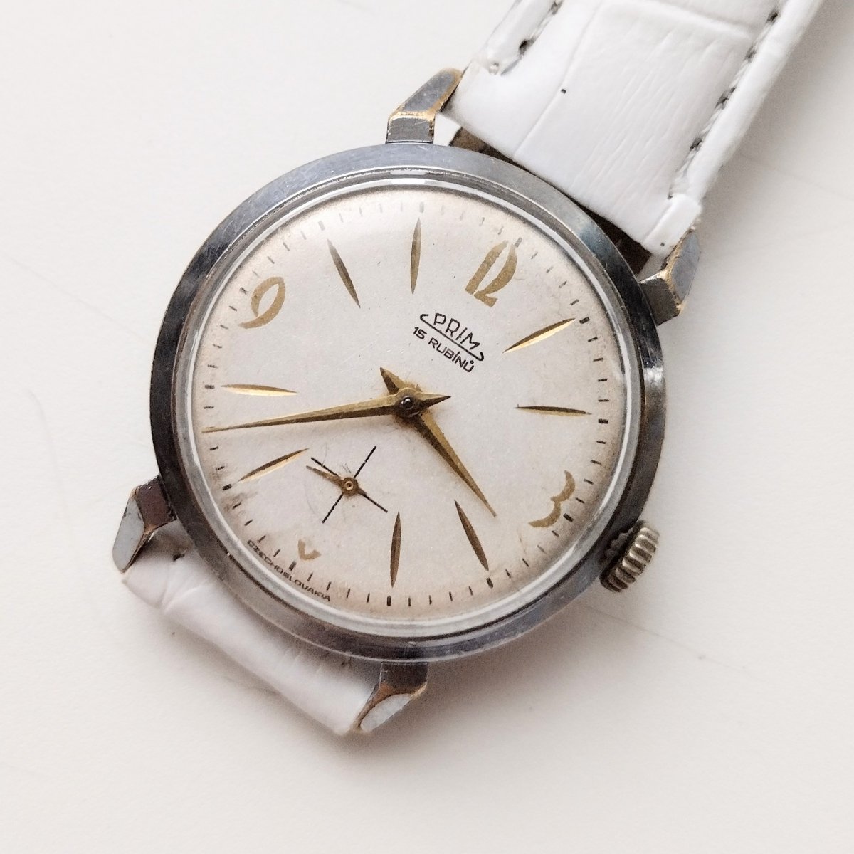 Oblíbený model pavouk ve slušném stavu. Na pouzdře i číselníku patrné stopy používání a stáří. Strojek kalibr 50 plně funkční, vzhledem ke stáří bez záruky