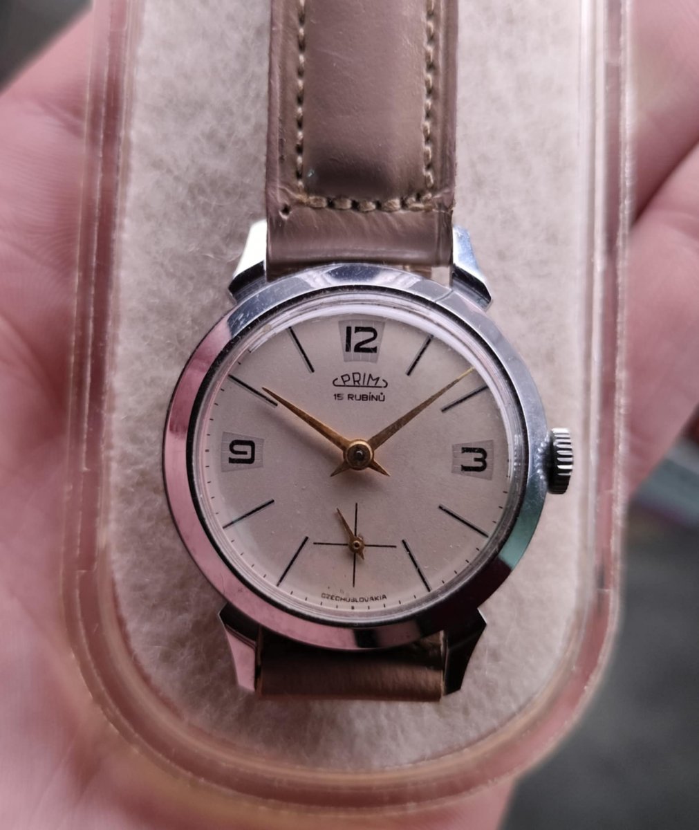 Nabízím ze své sbírky zajímavé dámské hodinky Prim Pavouk se šedými indexy, s původní krabičkou a řemínkem, hodinky byly nejspíš minimálně nošené, strojek funkční, ale přesnost a délka chodu neměřena.