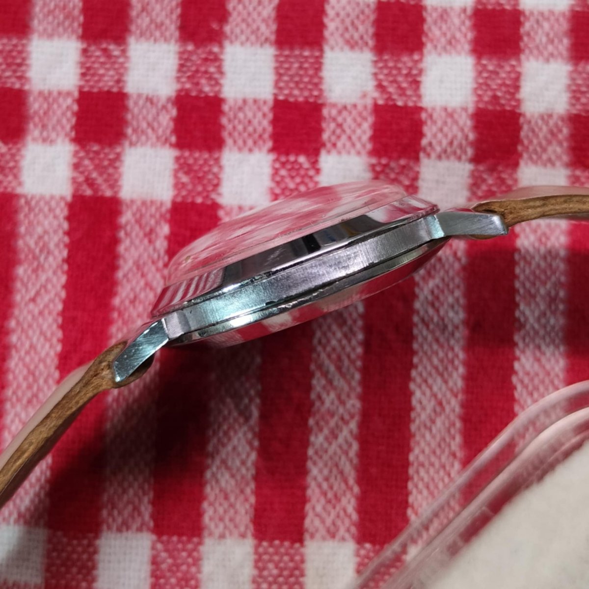 Moc pěkný stav, akorát mezi 12 až první hodinou je škrábanec na rámečku skla, na foto je to vidět, ale radši na to upozorňuji. Dlouhou dobu nešly, natahoval jsem je teď po několika letech a musel jsem s nimi lehce zahýbat, aby se rozeběhly, dále teď běží v pořádku, ale pokud je budete chtít na každodenní nošení, doporučuji vyčistit a namazat strojek.