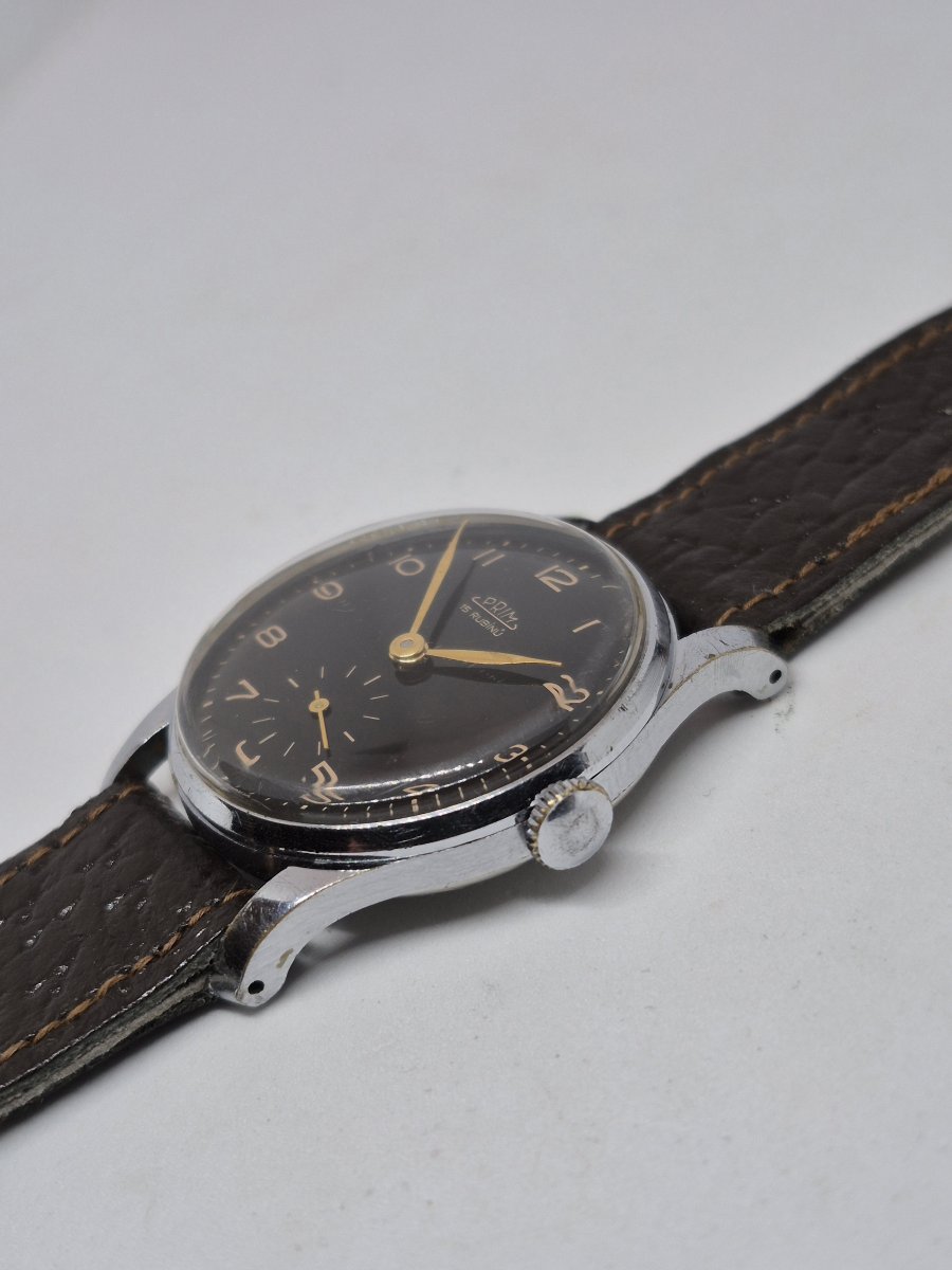 Prodám hodinky Prim 50 002 1, které dostaly v Eltonu ještě pouzdro Spartak(krásný stav!). Strojek TYP 010 je po servise a má stále původní 18 šroubkovou setrvačku. Hodinky jsou kompletně původní včetně vyššího sklíčka, které je jako setrvačka u většiny hodinek už dávno vyměněna. Hodinky bez dalších investic včetně dobového řemínku. Posílám pouze ČP jako cenné psaní nebo osobní předání.