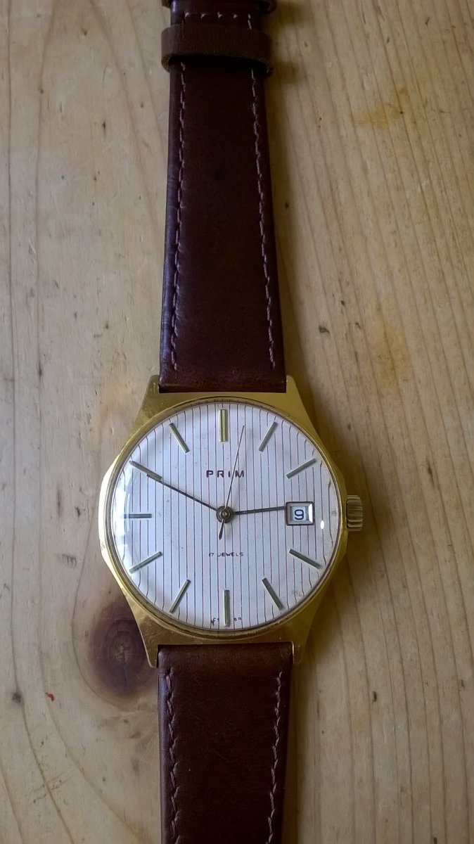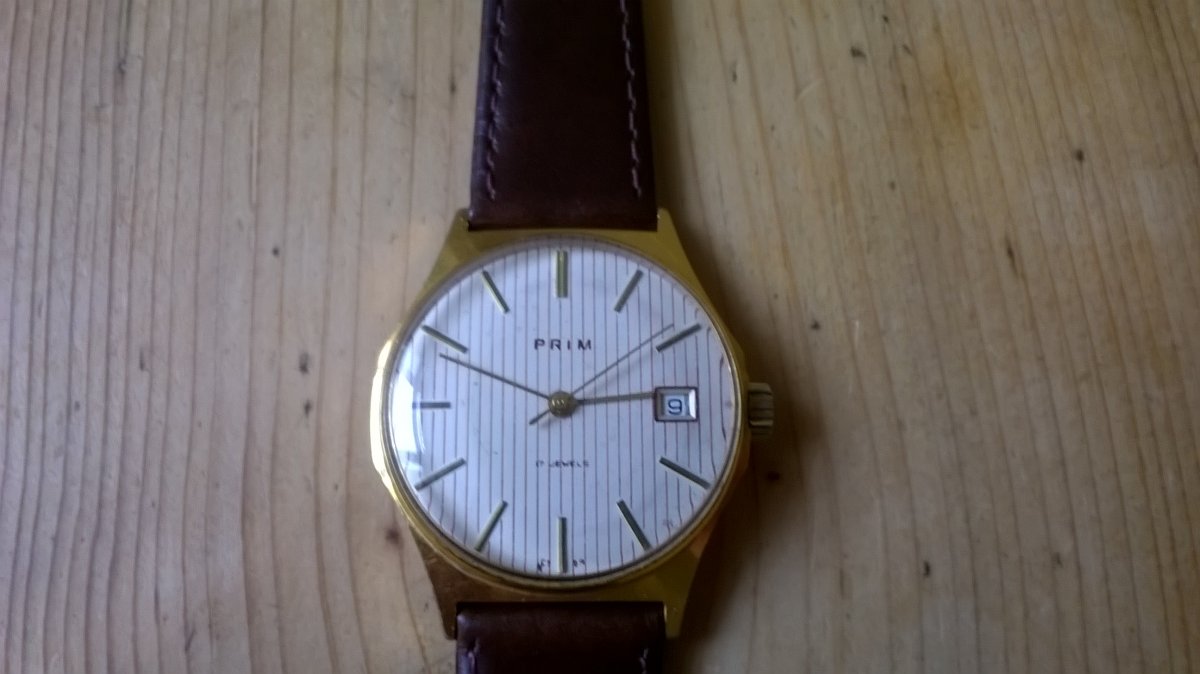 Pánské náramkové hodinky Prim, zlacené, tzv, pyžamo. Krásný stav! Ihned do sbírky nebo na ruku!