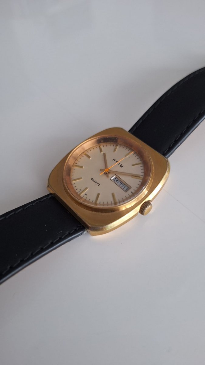 Hodinky jsou v hezkém a zachovalém stavu, viz foto, datum překlápí. Pásek je součástí nabídky. Baterii jsem nedával, takže funkčnost je neznámá. Vzhledem k tomuto a stáří prodávám bez záruky.