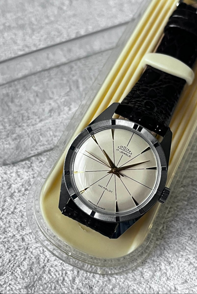 Vyřazuji ze své sbírky tyto krásné a v celku málo vídané Prim šipky v chrom provedení. Ciferník Top, pouzdro a korunka nevypocená. Ovalná krabička k tomu a nový, nenošený řemen.