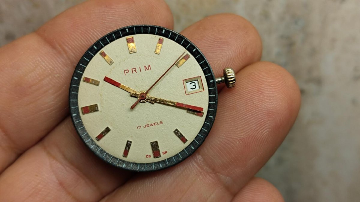 Prim Součástky  funkční  ,Stav viz foto.Hodinky jsou vyřazené z mé osobní sbírky,zboží je použito a tudíž bez záruky.Kupujete to co je na fotu.Snažil jsem se to nafotit v realnem stavu-viz foto.Odesílém řádně zabaleno a pojištěné.Poštuvné dle ceníku ČP.ZÁSILKOVNA.