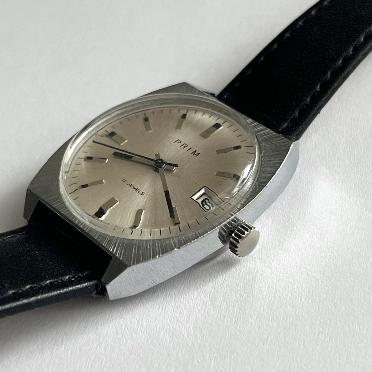 Funkční prim soudek s datumovkou v chromovaném pouzdru,řemínek součástí,vzhledem ke stáří bez záruky