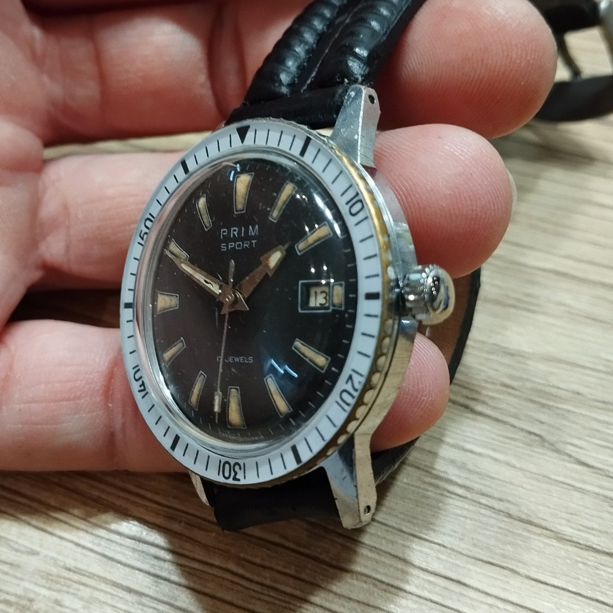 Hodinky Prim Sport 1, funkčný nálezový stav, v strede sklička prasklinka, vodotesnost nezistovana, bez záruky Remienok je v cene. Posielam iba zasilkovnou (Packeta) na vydajné miesto 130 kč do Cz