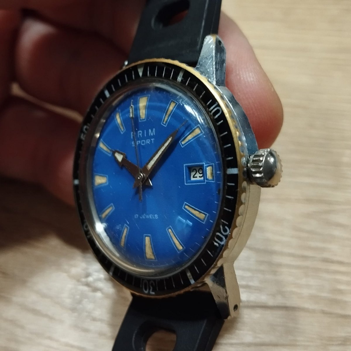Hodinky Prim Sport 1, funkčné, vodotesnost nezistovana. Remienok je v cene. Posielam iba zasilkovnou (Packeta) na vydajné miesto 130 kč do Cz