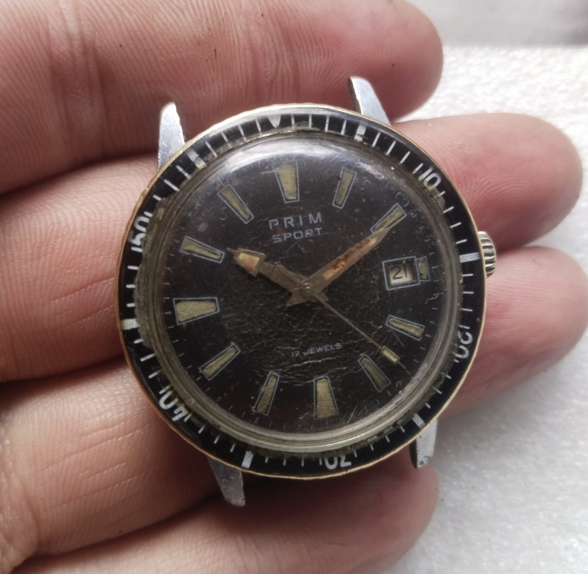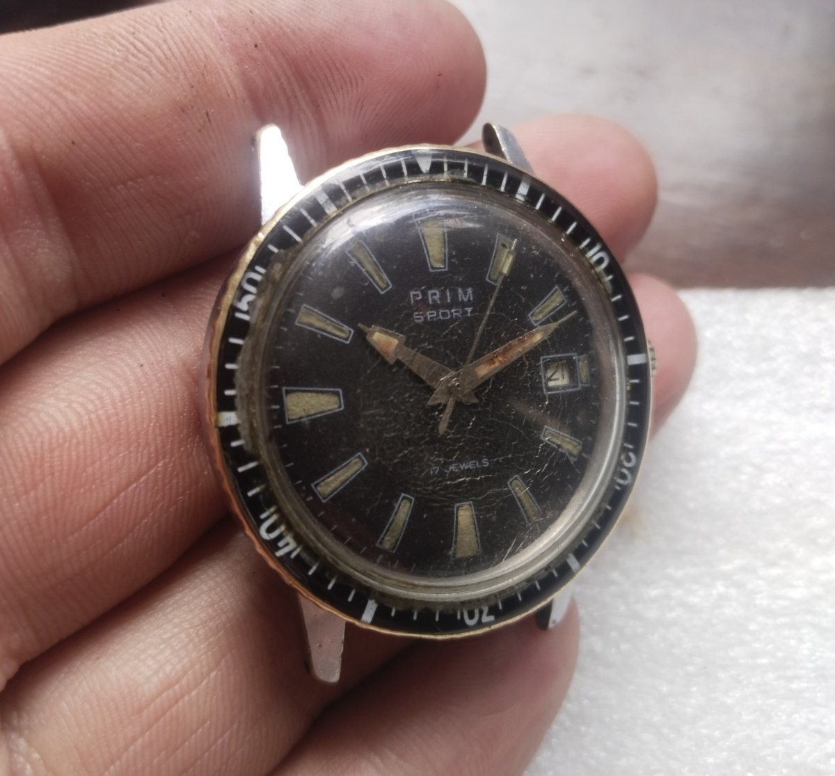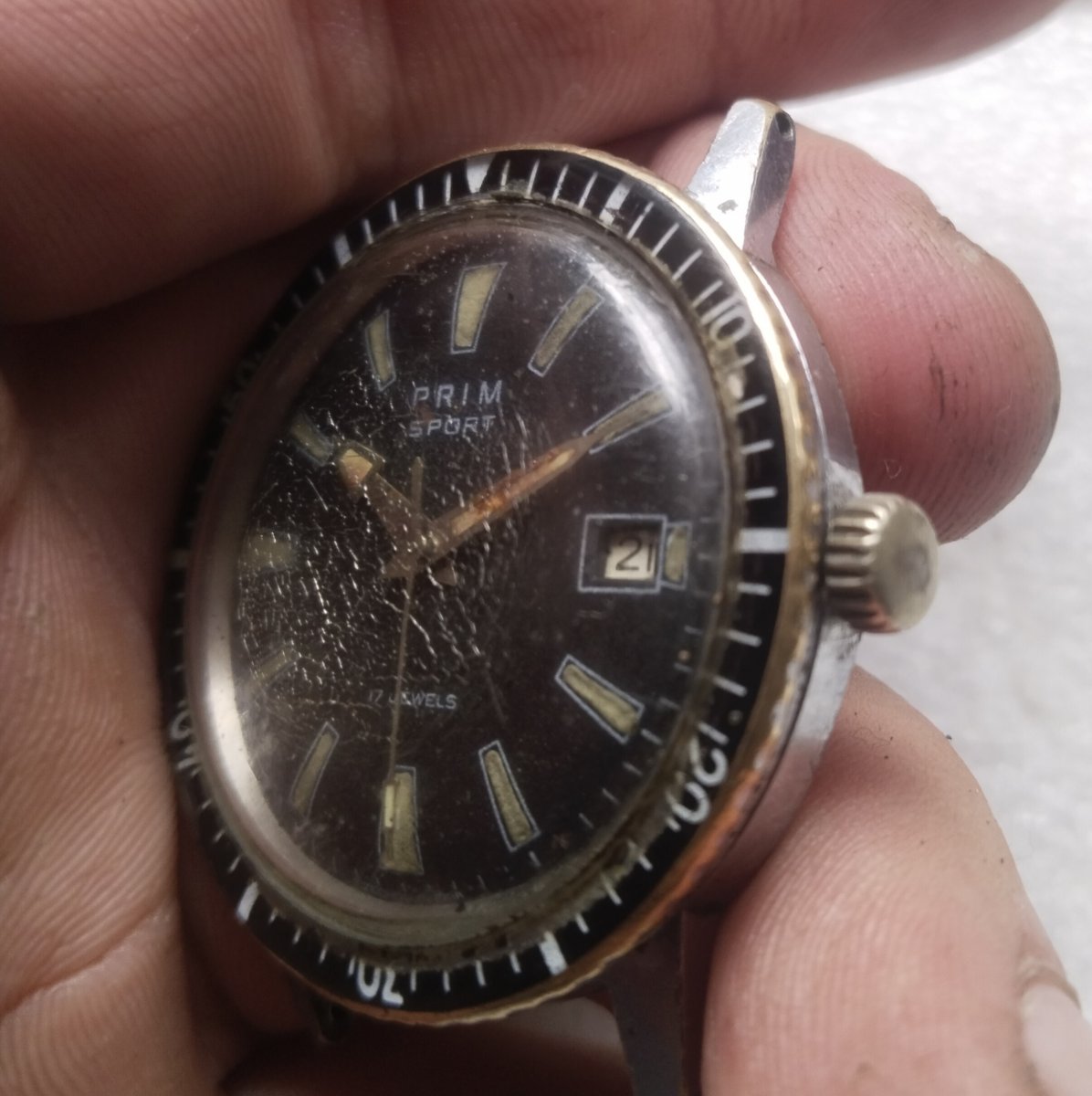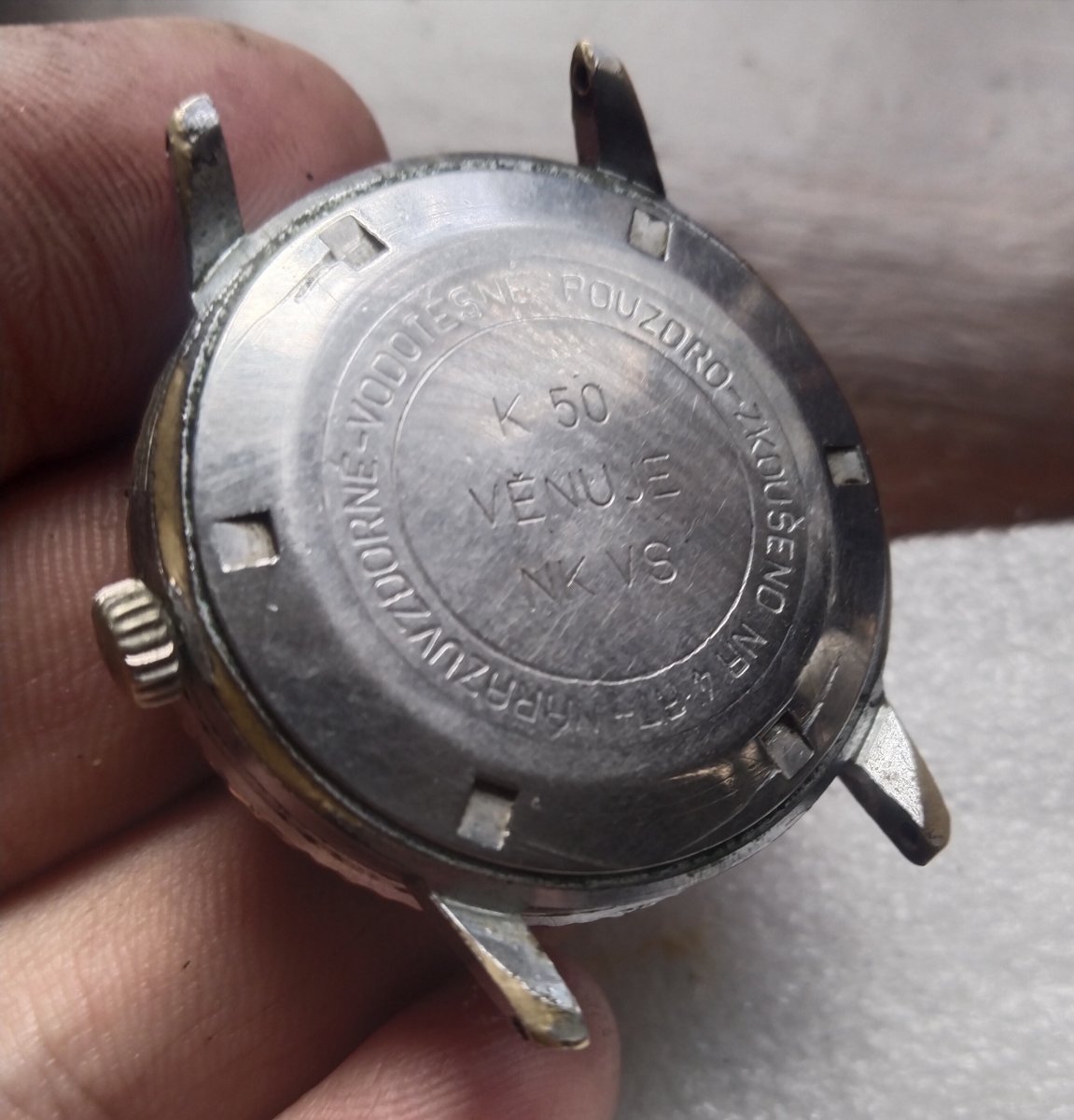 Sklo by potřebovalo trochu lásky, jinak slušný stav, zvláště ciferníku, který je nepoškozený