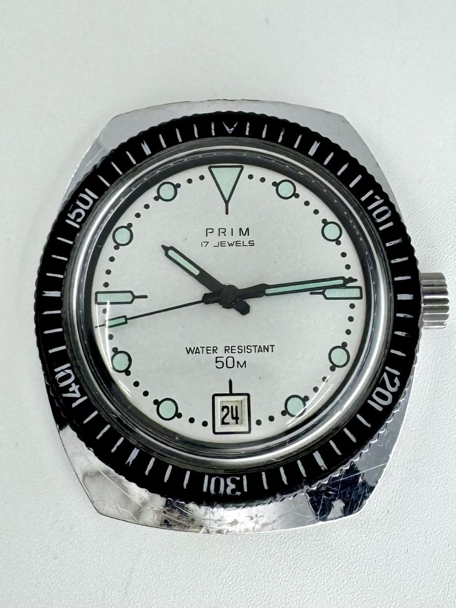 PS2 68.399.1.2, model 1980 s bílým číselníkem, v krásném stavu, pouzdro velmi zachovalé, vše funkční a relativně přesné. Foceno na super macro, bez retuší a úprav. Vzhledem ke stáří bez záruky.