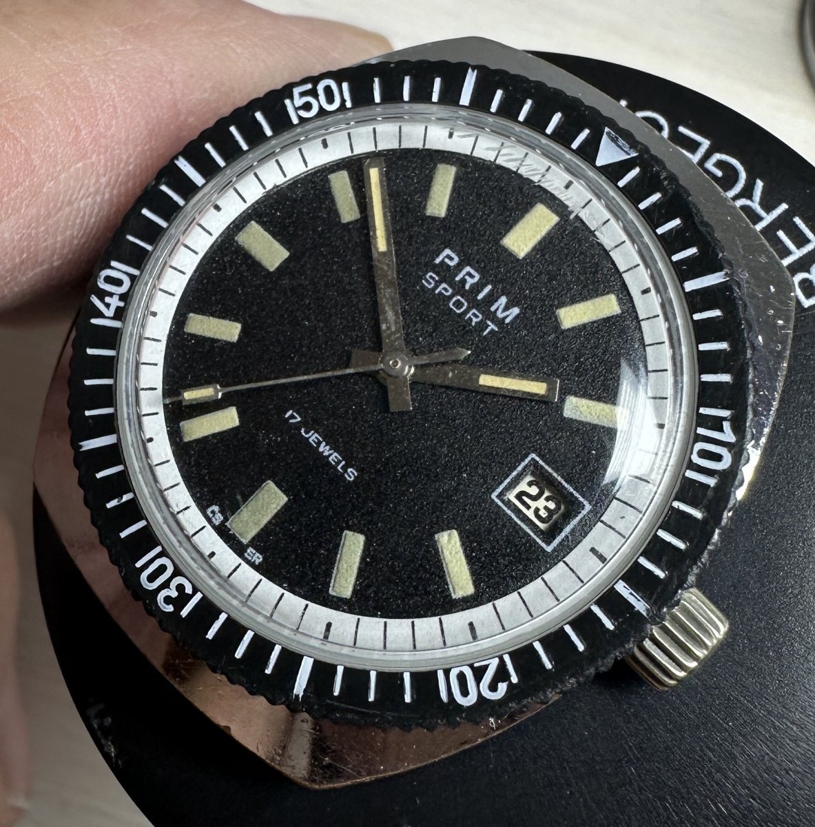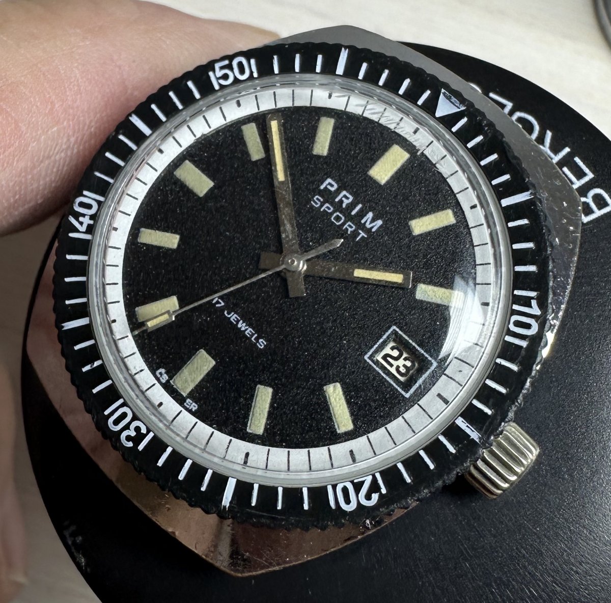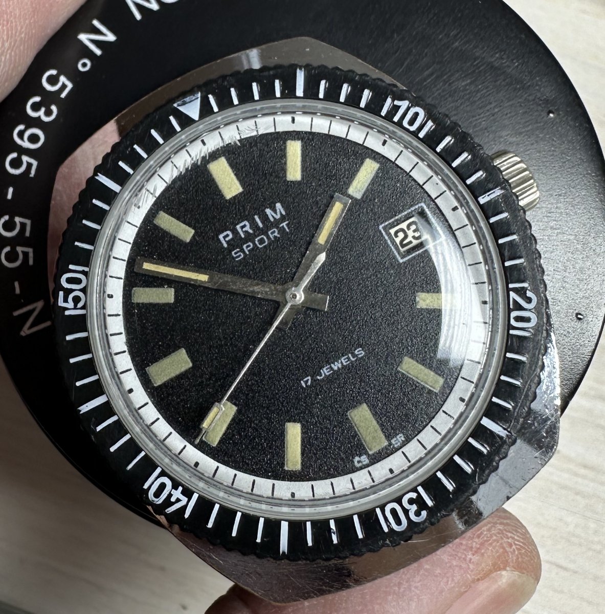 PRIM Sport II 68 206 1, vo tme svietiace indexy a ručičky, rozmery púzdra 36 x 41 mm, funkčné, presné, stav viď. fotografie.