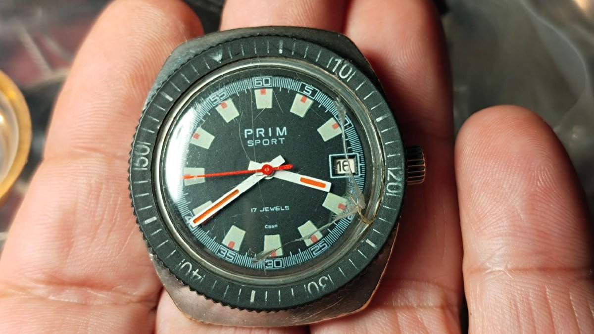 Prim Sport II  funkční  ,Stav viz foto.Hodinky jsou vyřazené z mé osobní sbírky,zboží je použito a tudíž bez záruky.Kupujete to co je na fotu.Snažil jsem se to nafotit v realnem stavu-viz foto.Odesílém řádně zabaleno a pojištěné.Poštuvné dle ceníku ČP.ZÁSILKOVNA.