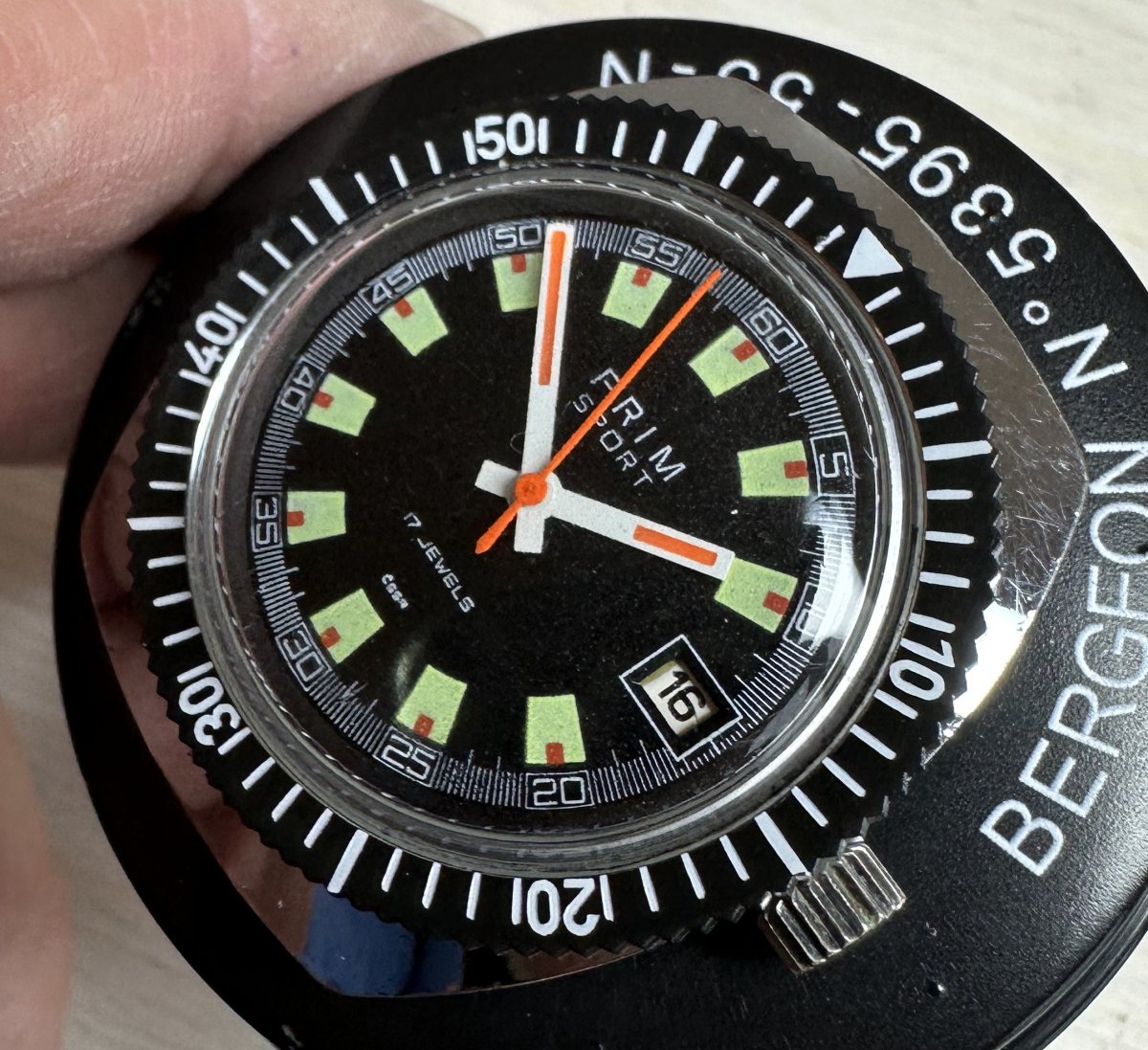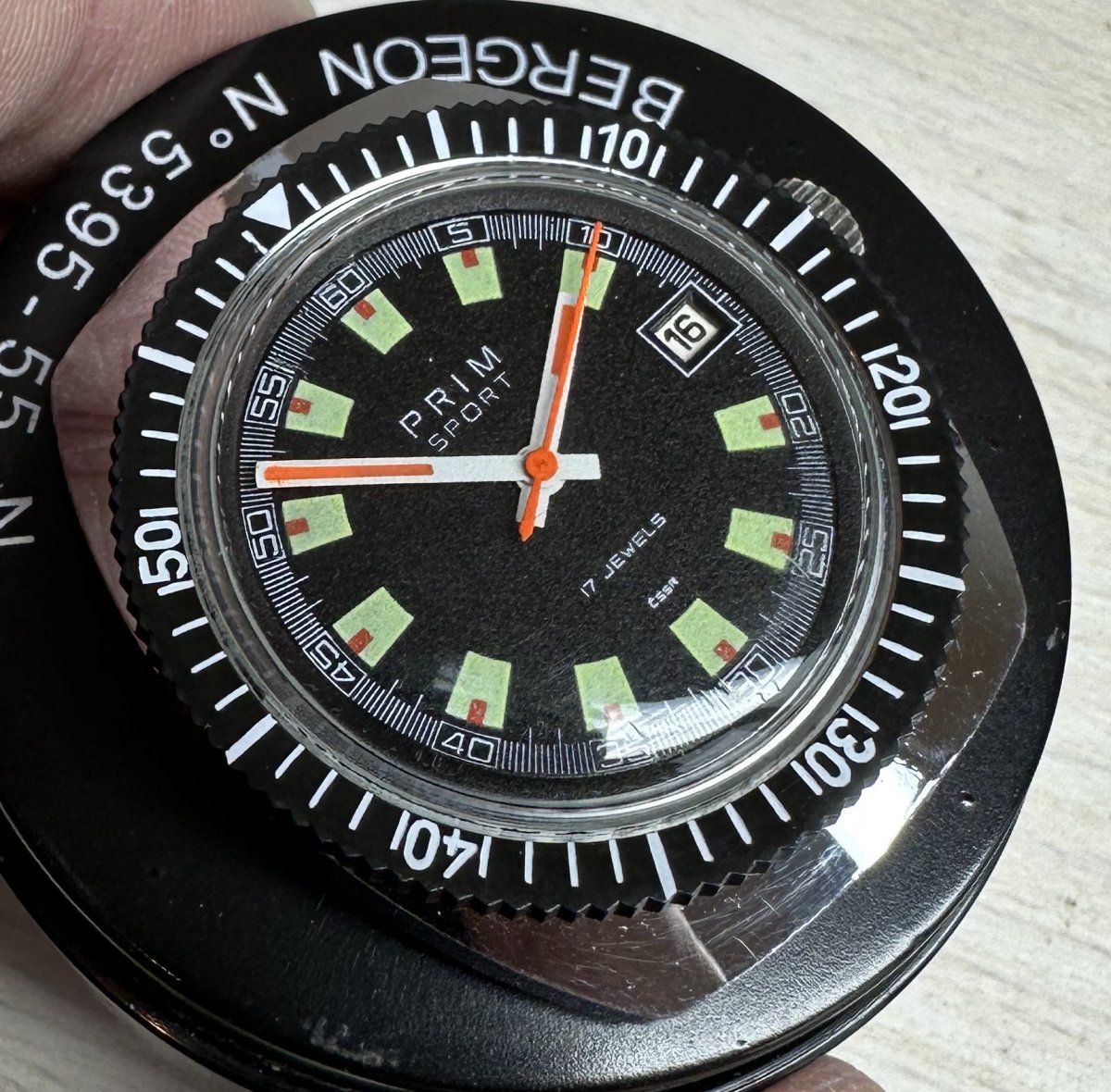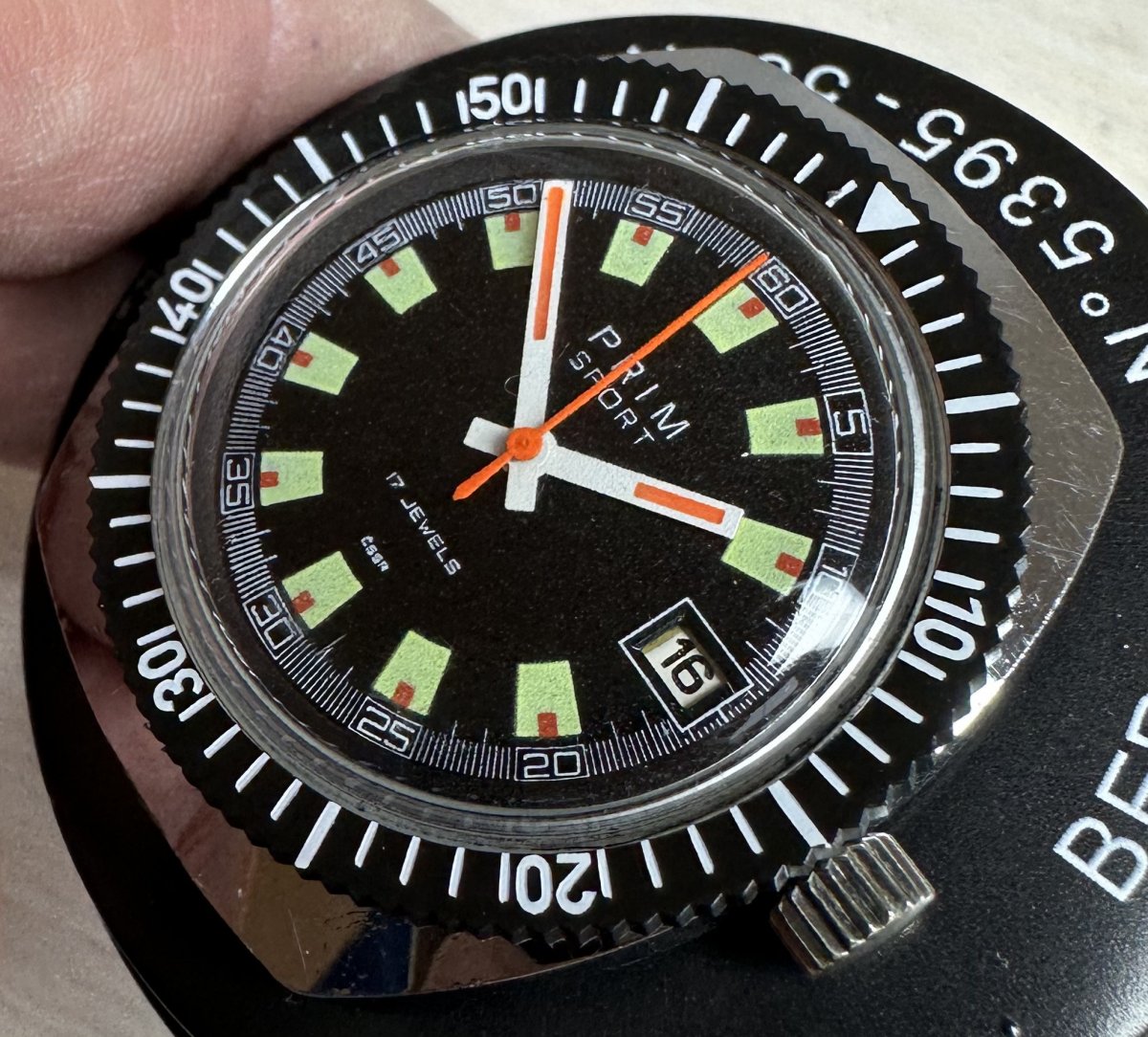 PRIM Sport II svetlozelené indexy 68 400 1, rozmery púzdra 36 x 41 mm, funkčné, presné, stav viď. fotografie.