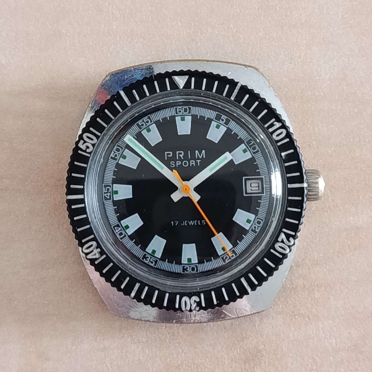 Prodám pánské náramkové hodinky PRIM SPORT II. Generace se strojkem ZJS. Jedná se o vzácnější provedení s ciferníkem, který se liší od klasických Humbert z 80. let. Na ciferníku není nápis ČSSR. Hodinky mají pravidelný chod. Původní armovací sklo je v super stavu, vyleštěné. Nová luneta není originál Elton - originál mohu dodat.